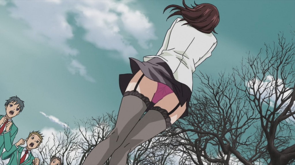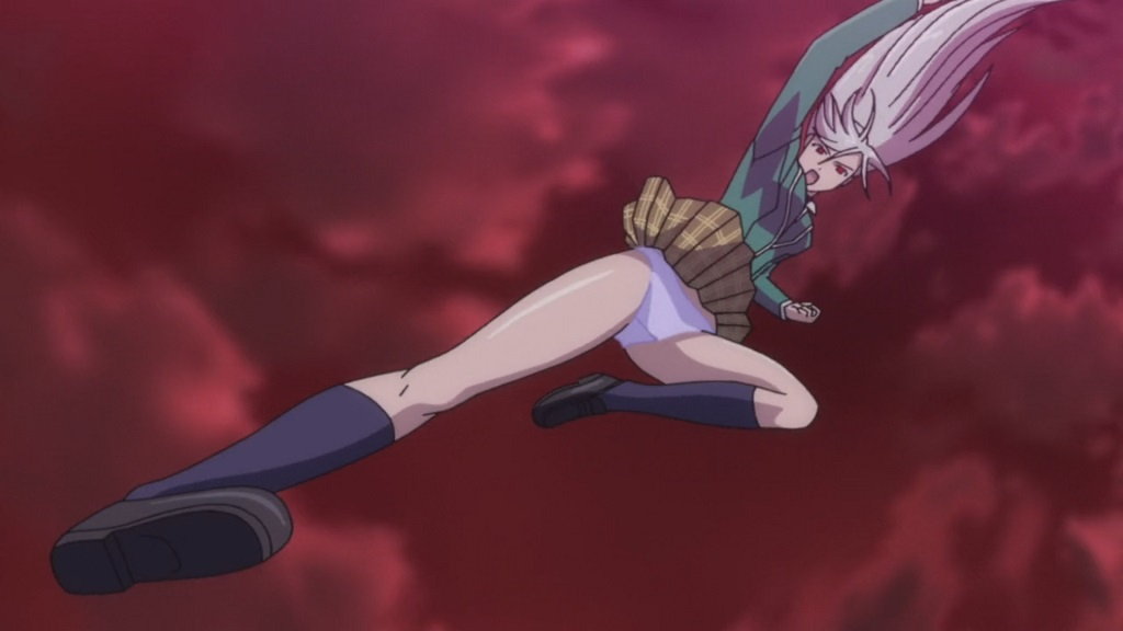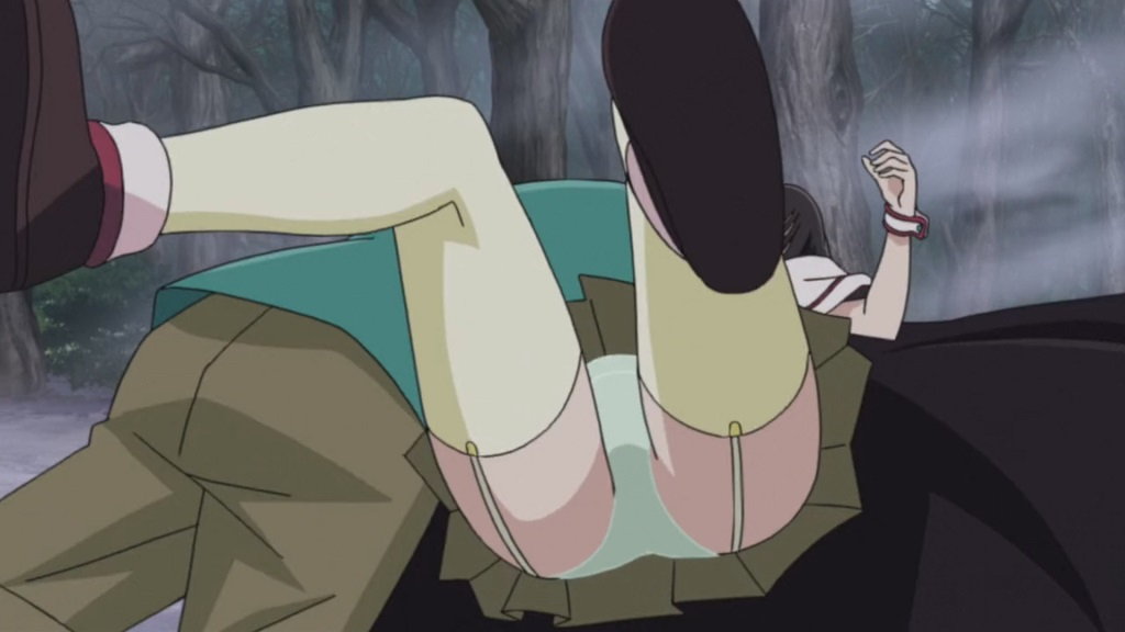 月音を救出に来たみぞれ。天井から飛び降り、パンツ丸見え。