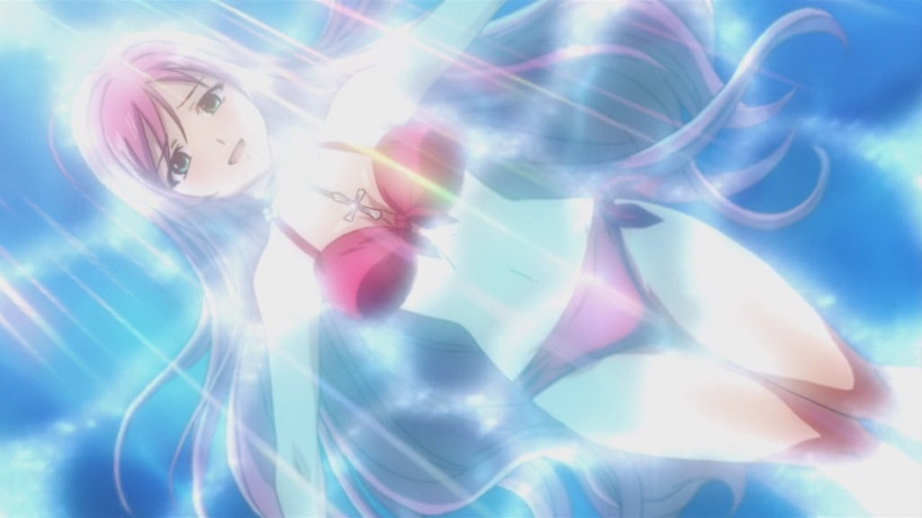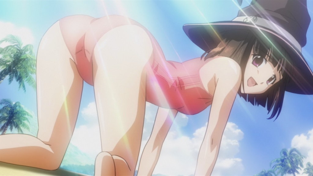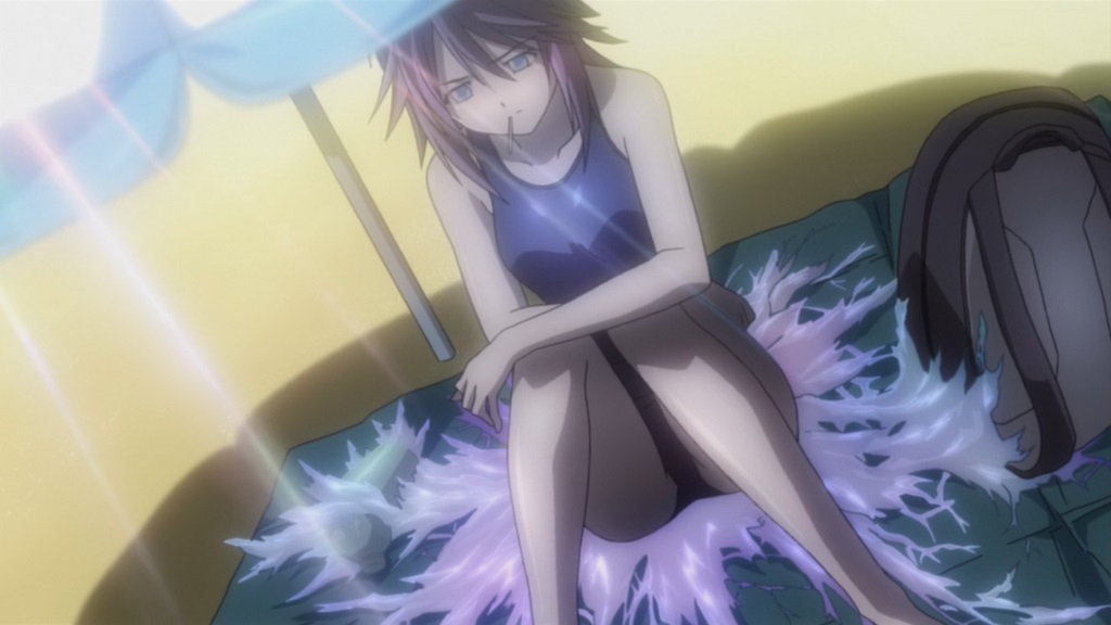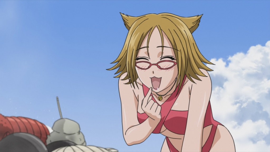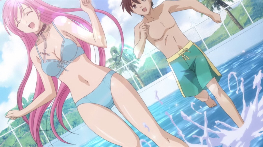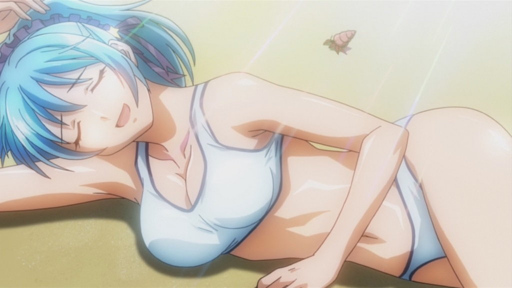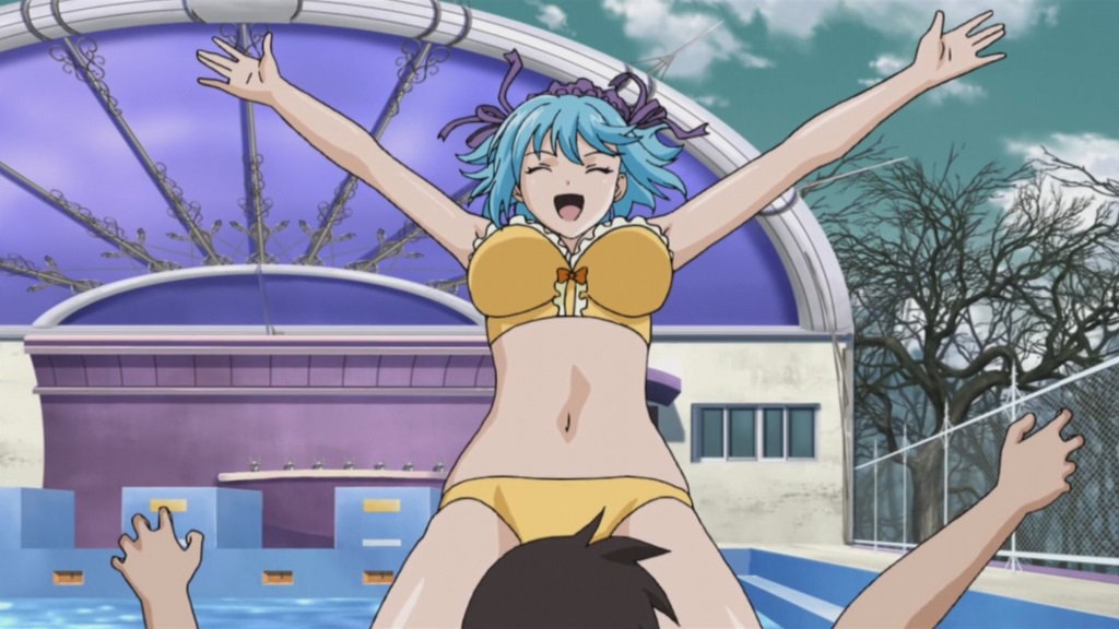 人間界に合宿にやって来た新聞部員たち。水着でビーチバレーに興ずる。