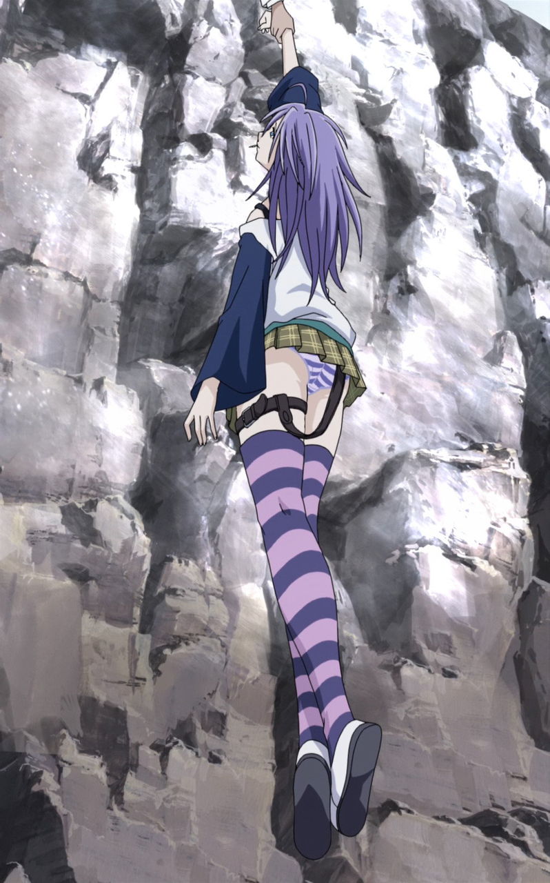崖から落ちかけたが、月音に手を掴まれて辛うじて助かるみぞれ。
