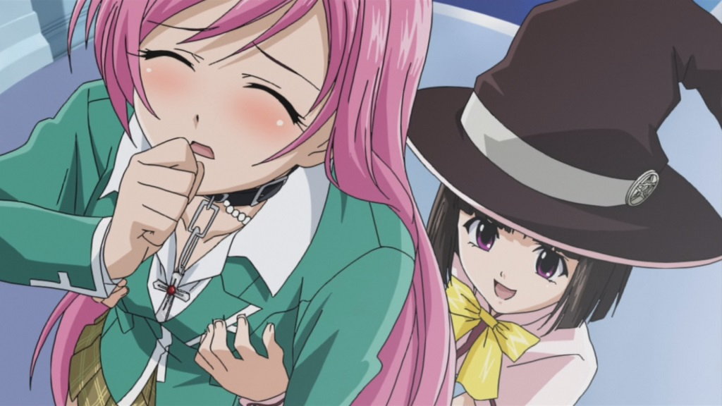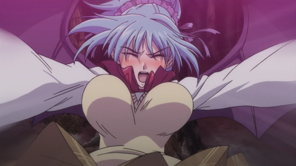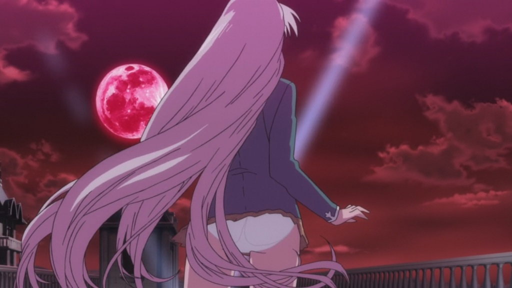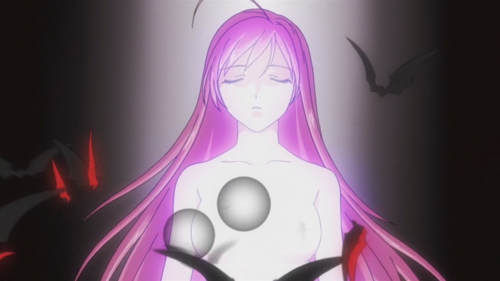 ロザリオによる封印が解除され、バンパイアに変身する萌香。