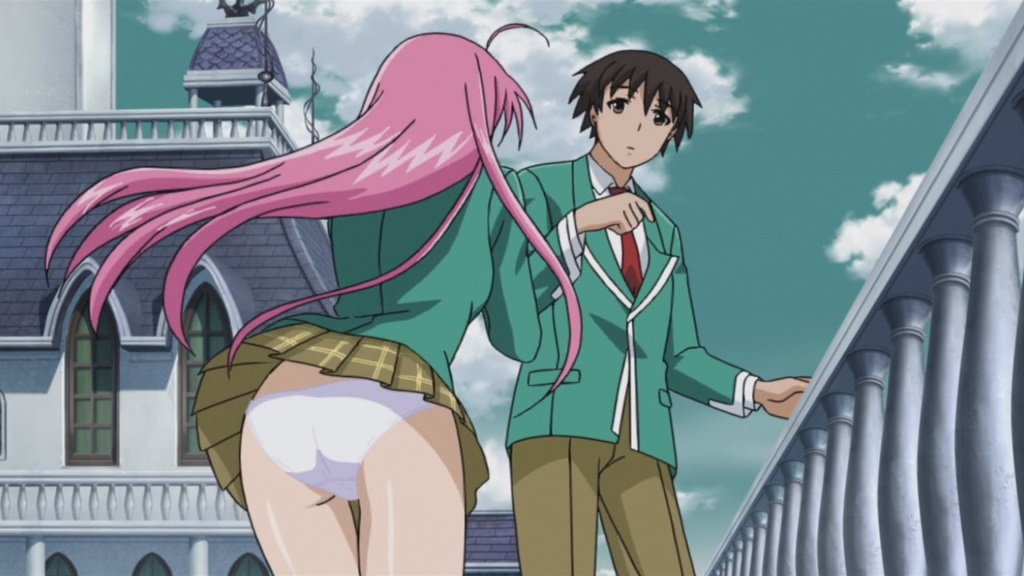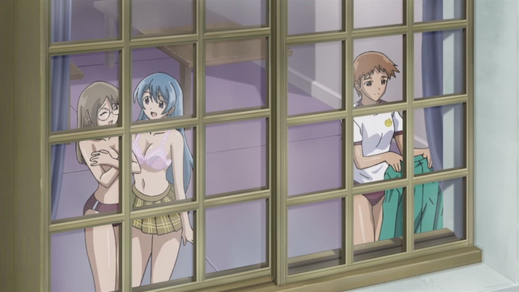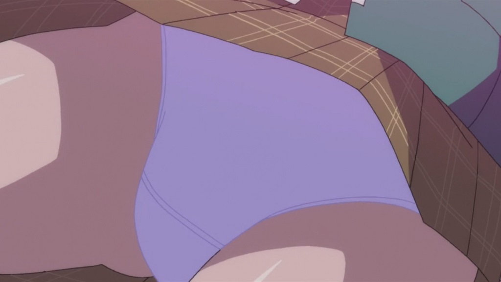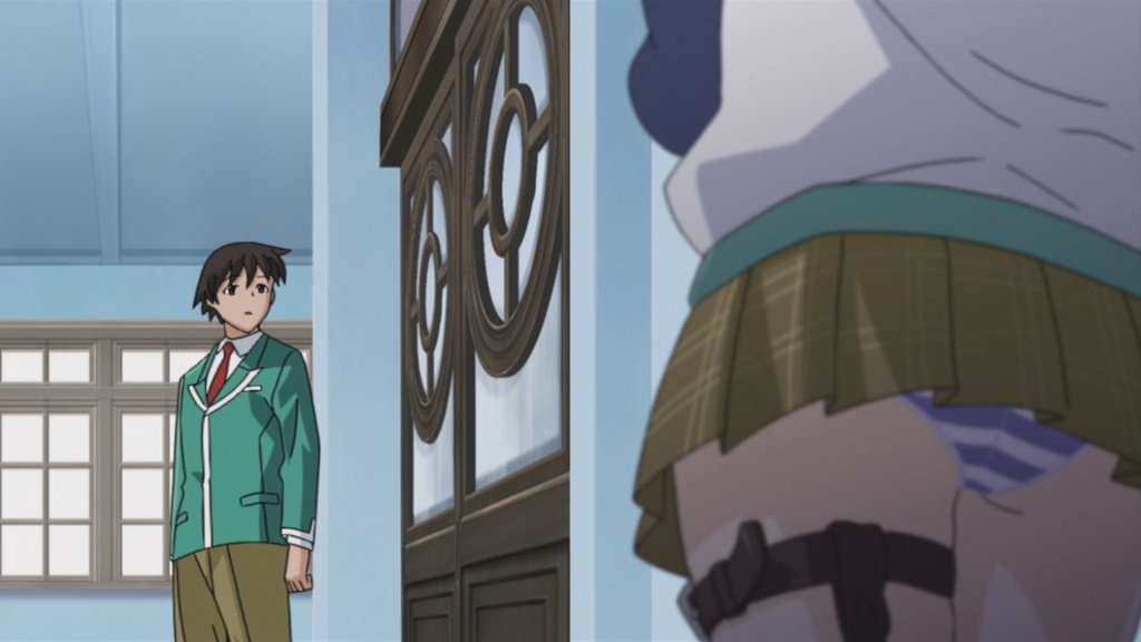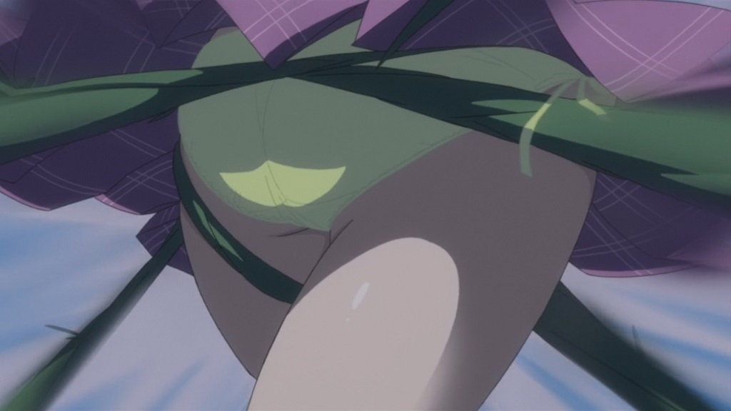 学園の廊下にて月音に話しかける、みぞれのパンチラ。