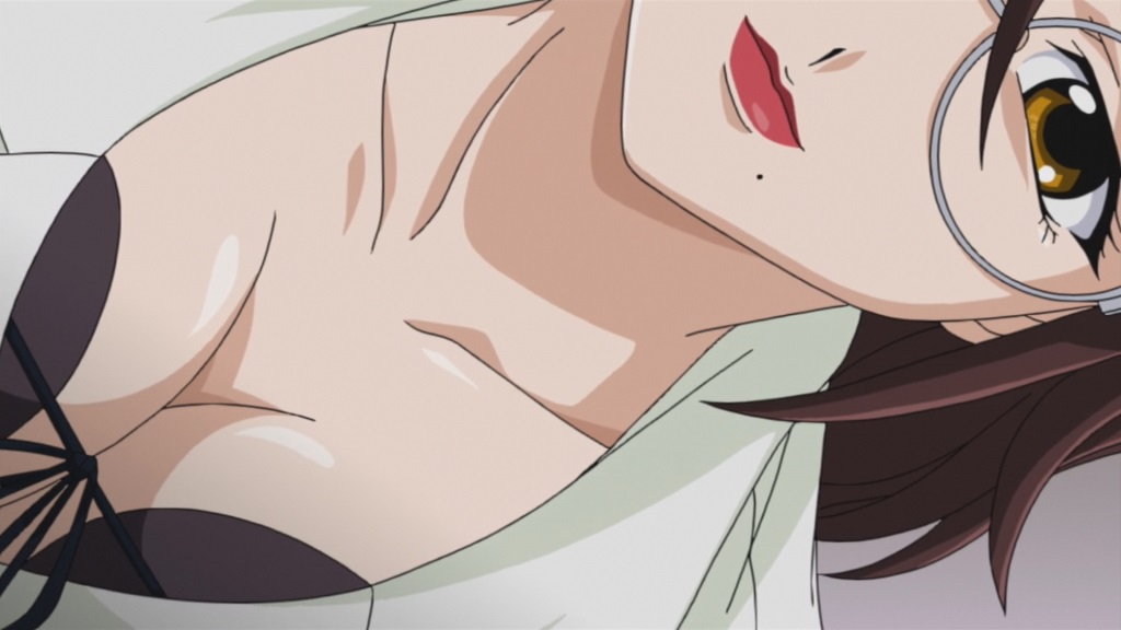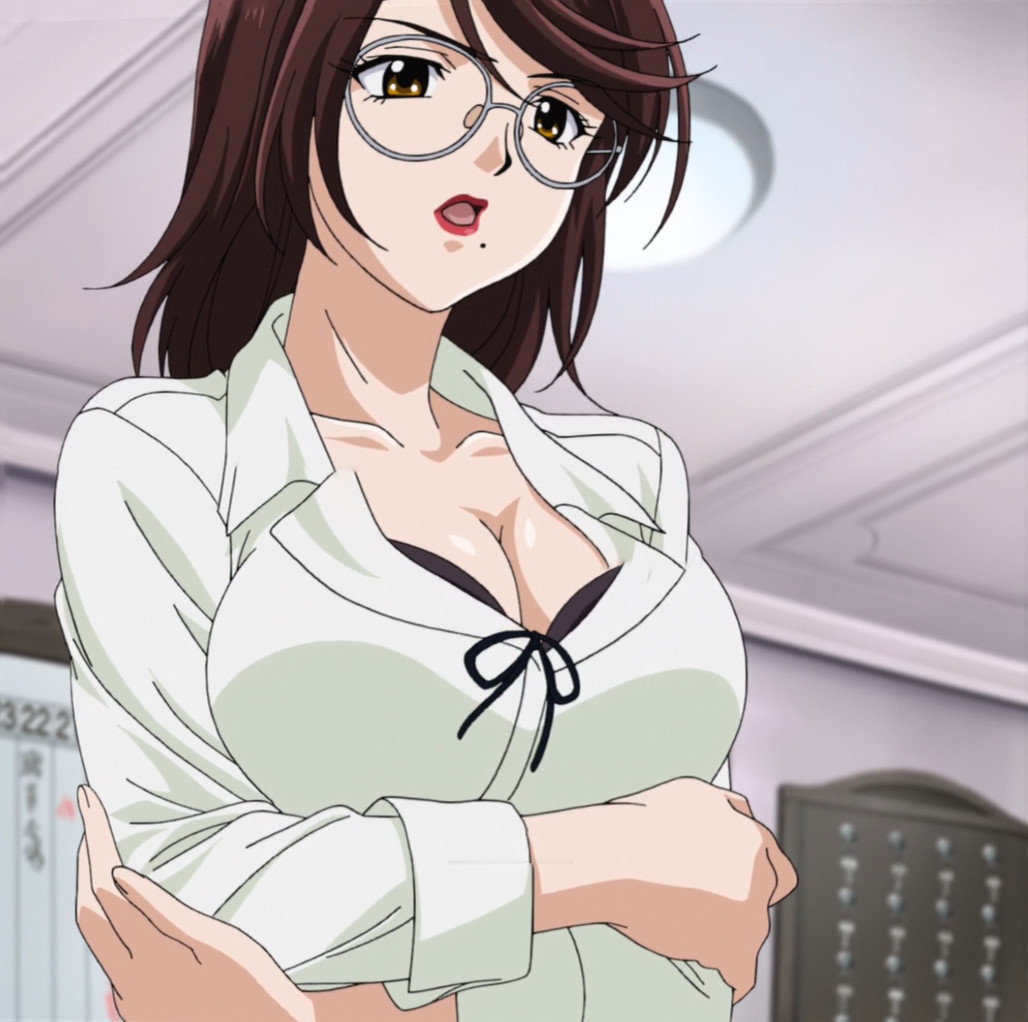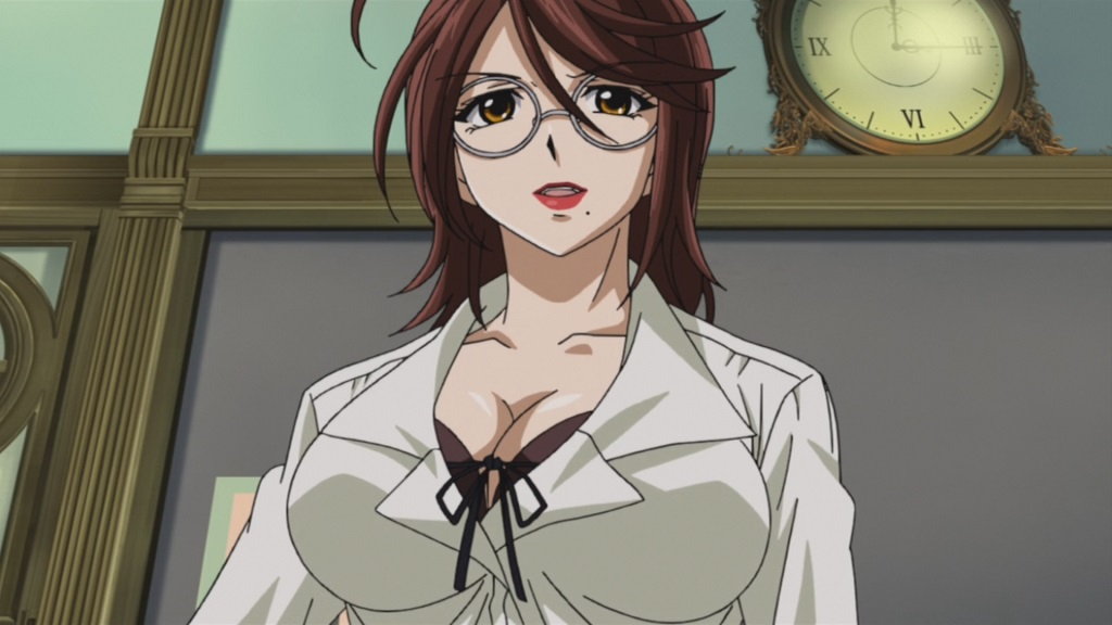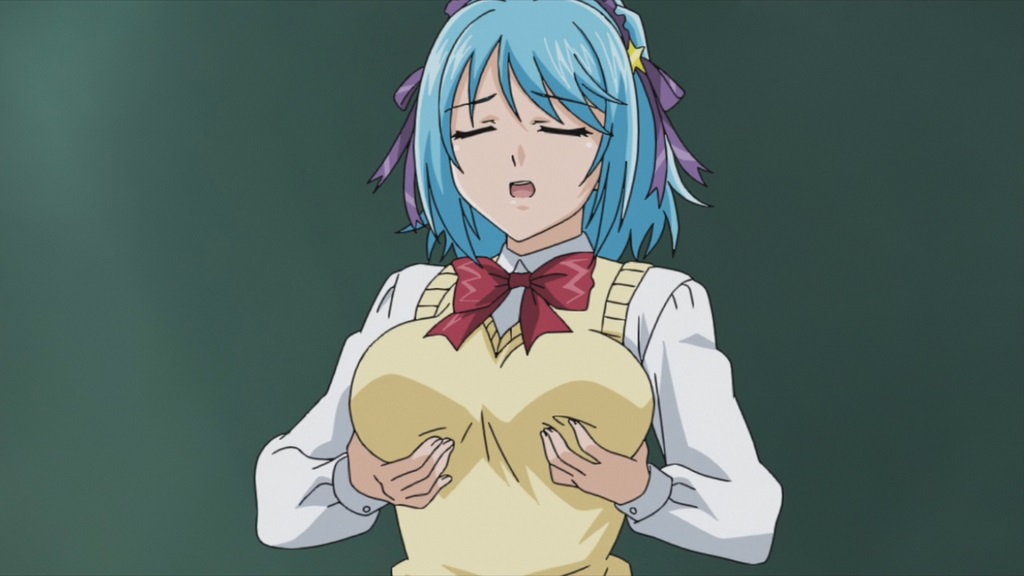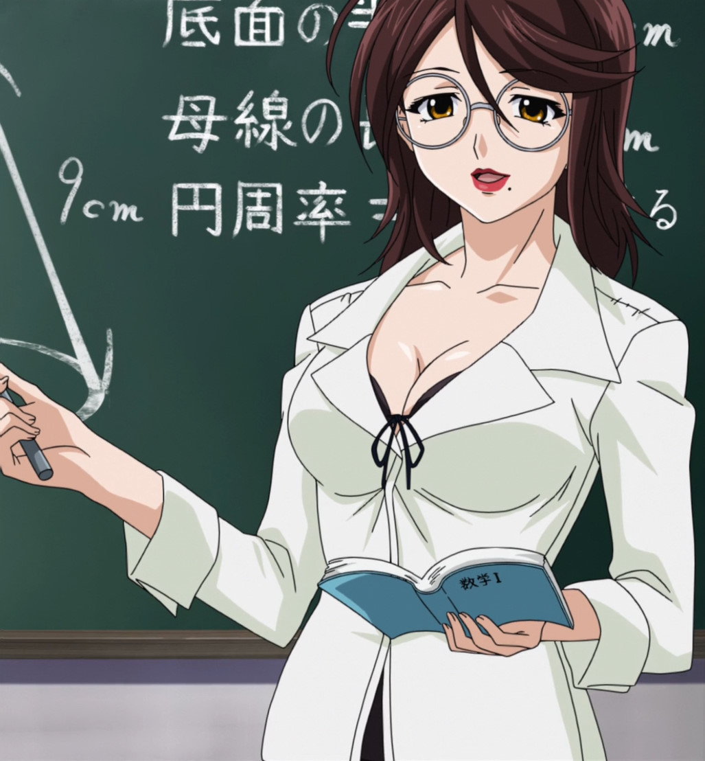 胸の谷間を見せびらかしつつ授業する李々子。