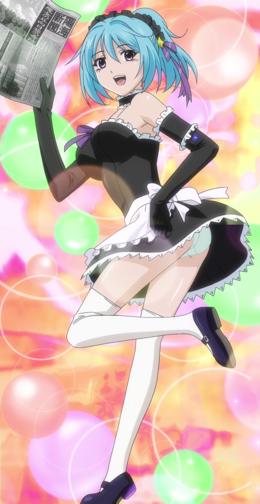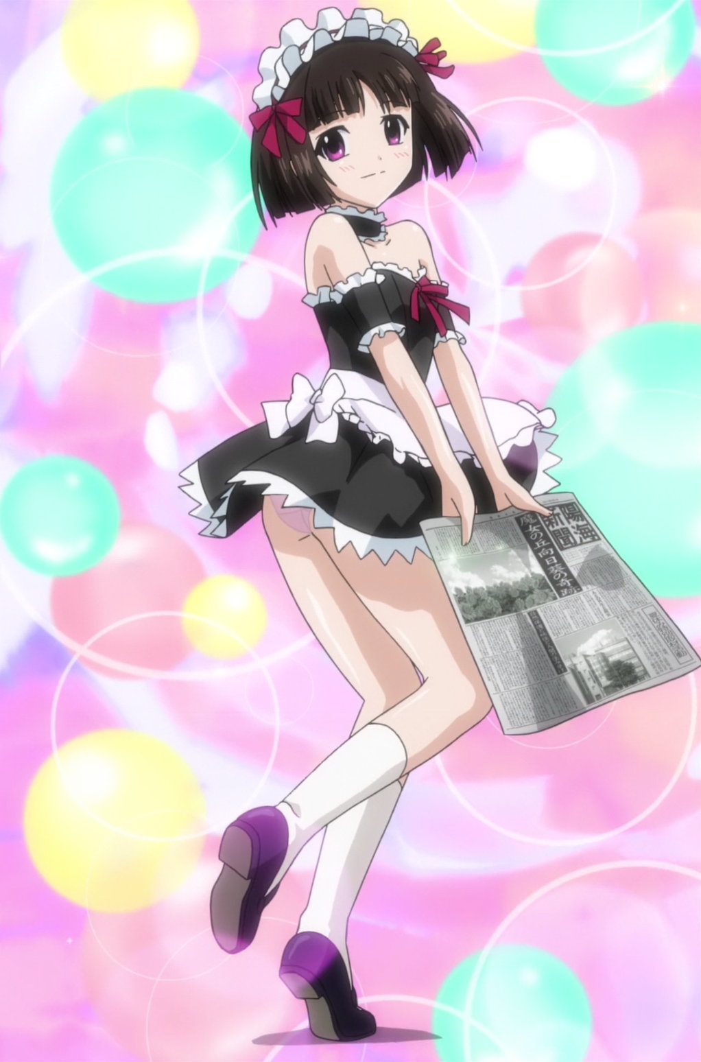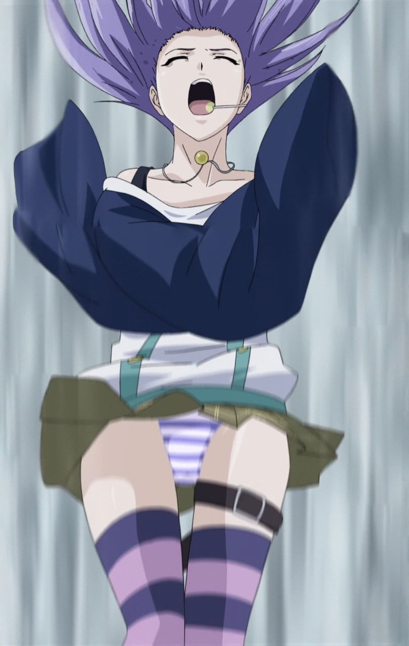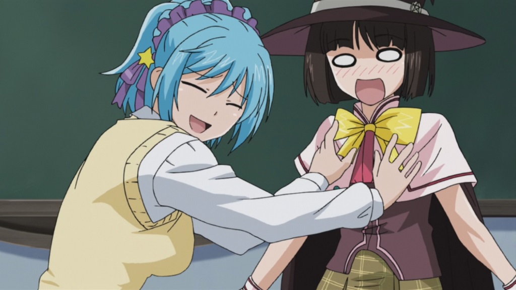 自分への悪口を言っていた女子生徒たちに対し、魔術でパンツを脱がせて悪戯する紫