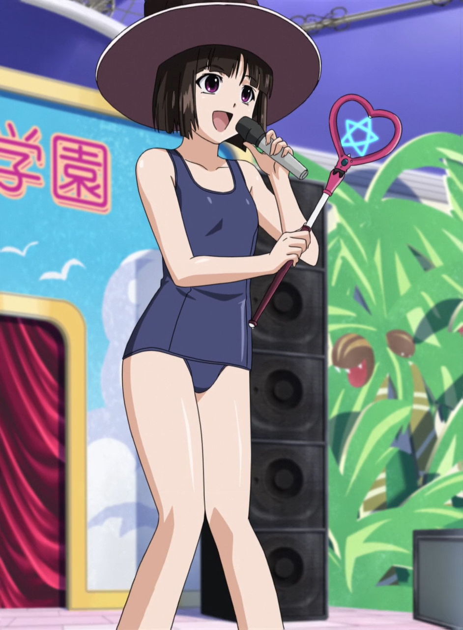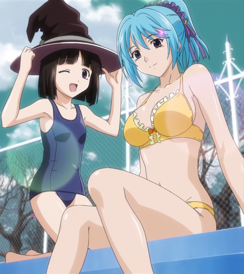 黄色いビキニの胡夢と、スクール水着の紫。