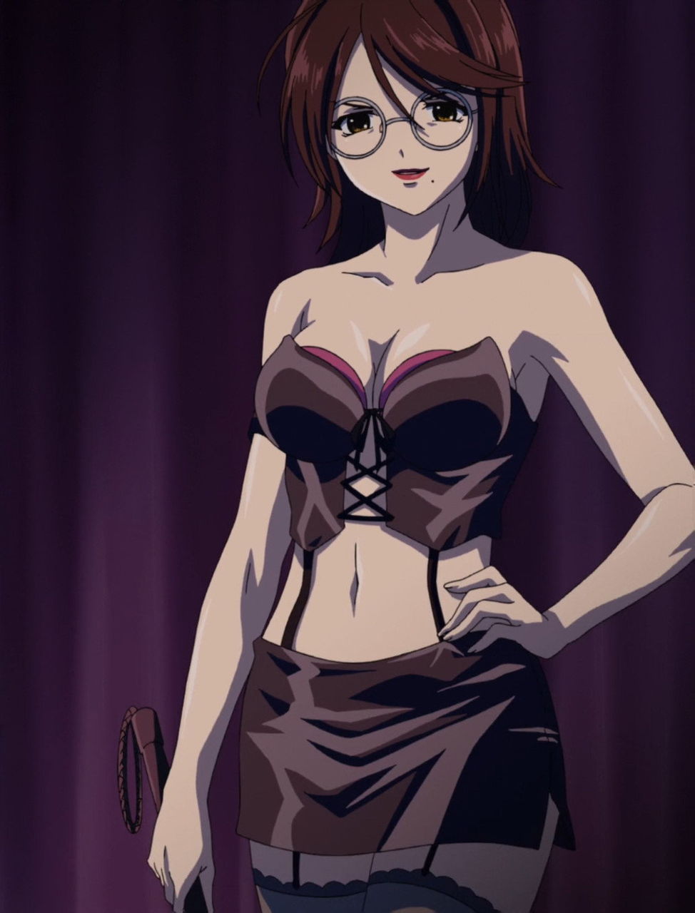月音が補習室に入ると、そこにはSMプレイ衣装にコスプレした李々子の姿が。
