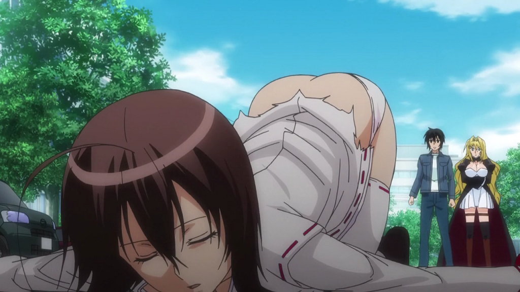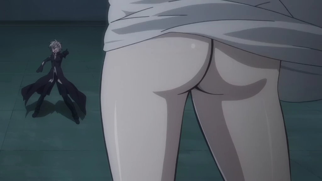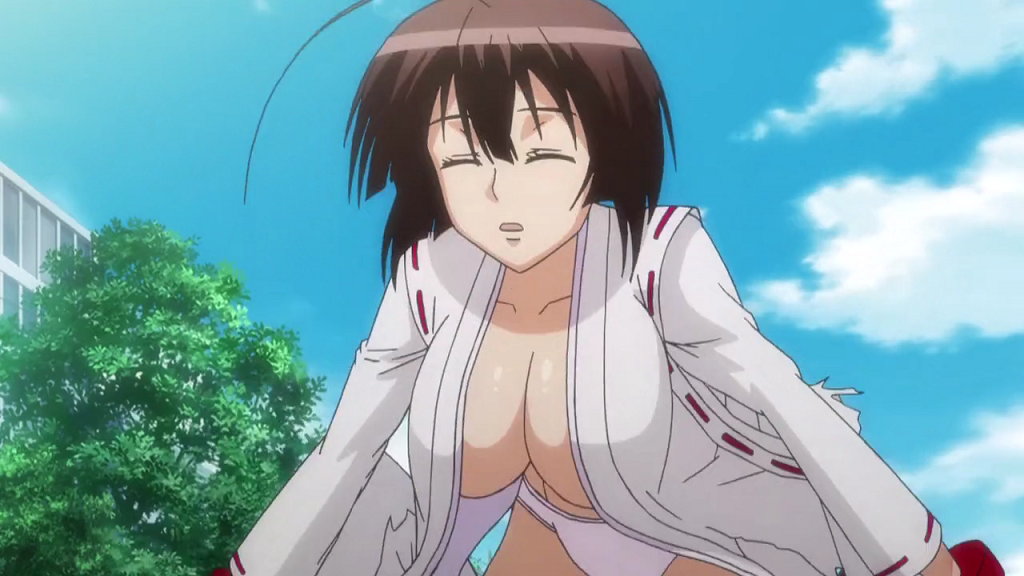 焰との戦闘中、風で服が捲れてお尻丸出しの秋津。
