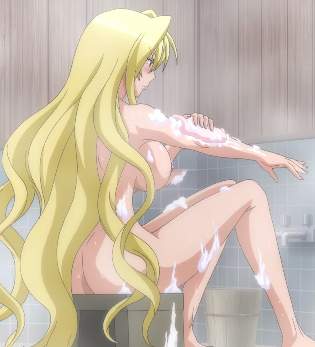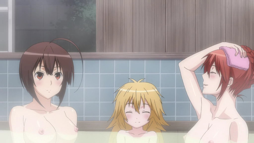入浴中の篝。皆人に反応して女体化した状態のため、乳房がある。