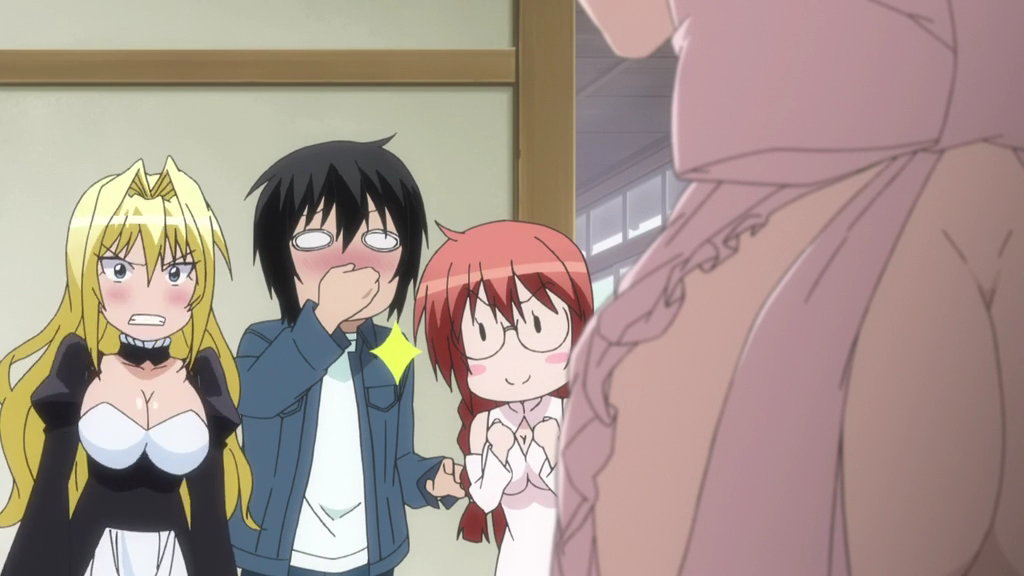 裸バスタオル姿の風花、月海、結に忠告する美哉。