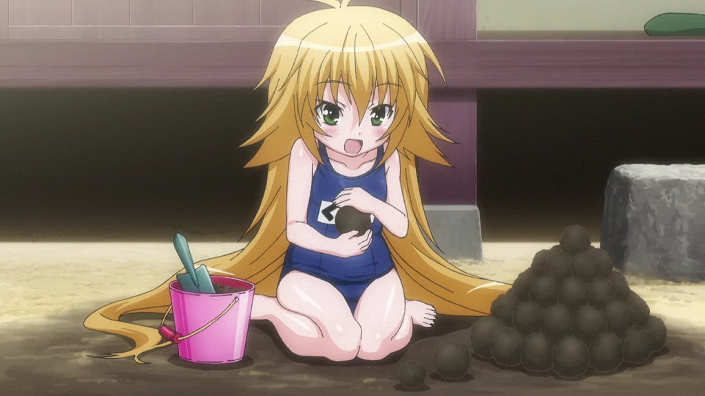 泥団子を捏ねるスクール水着の草野。