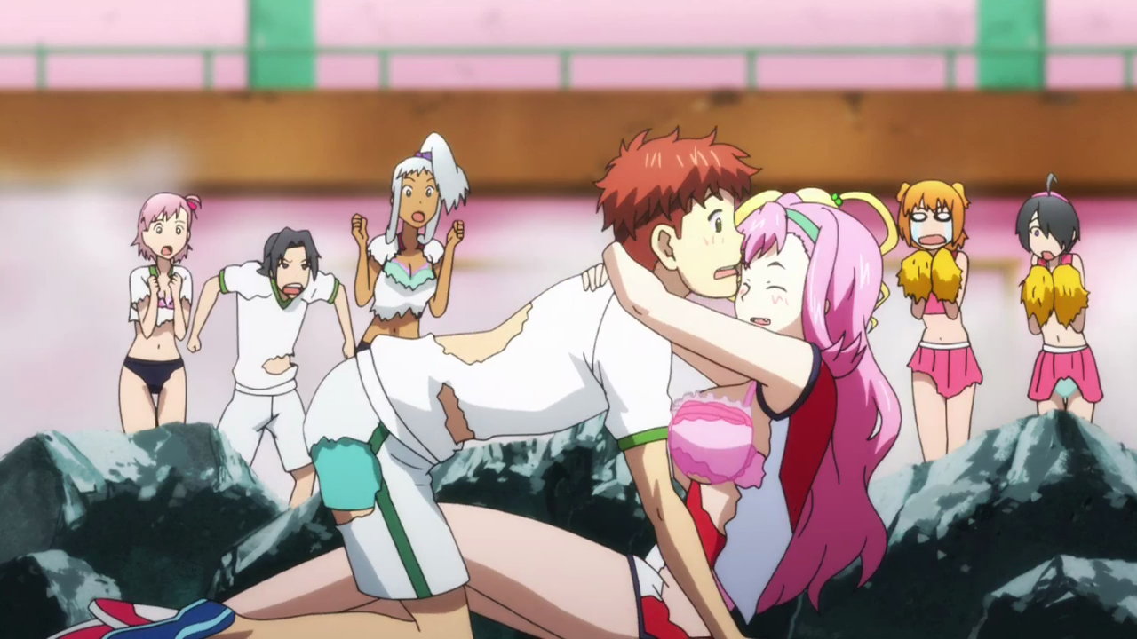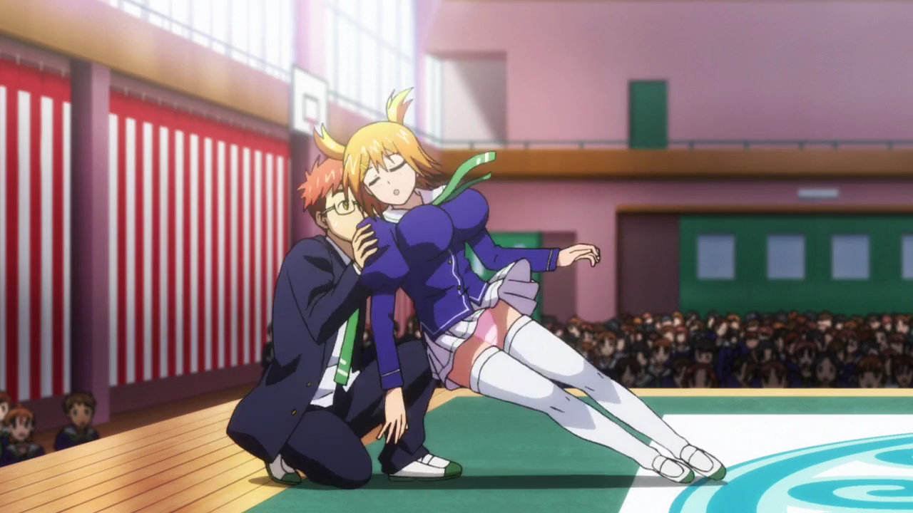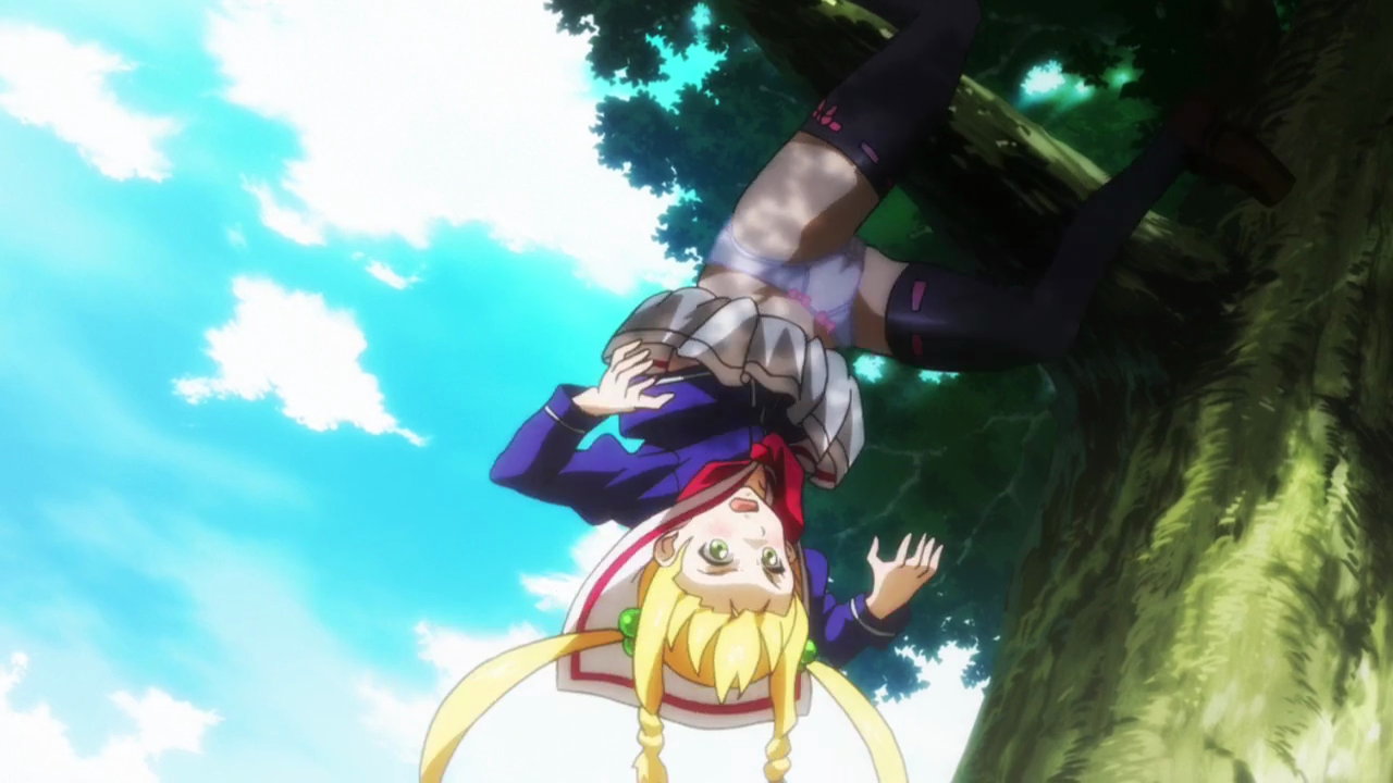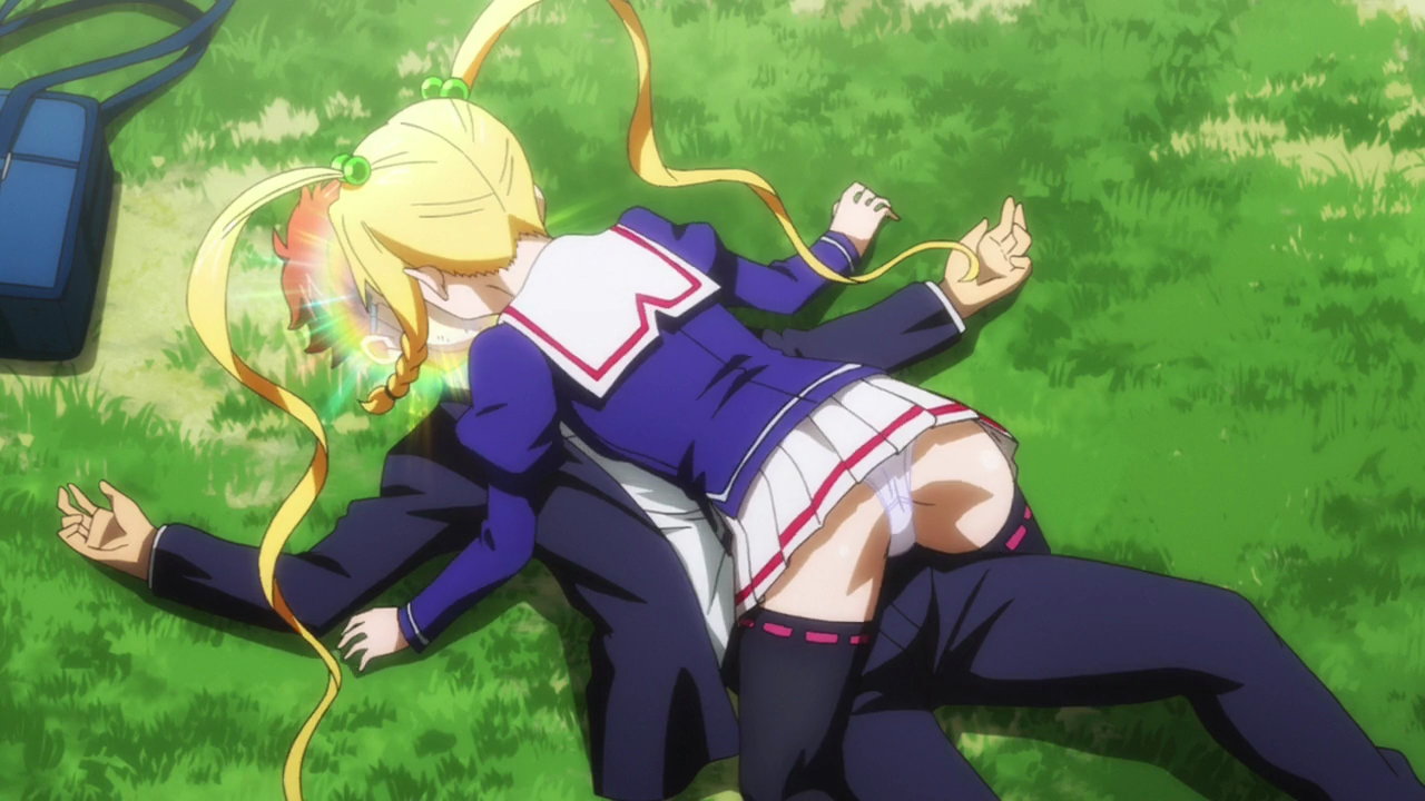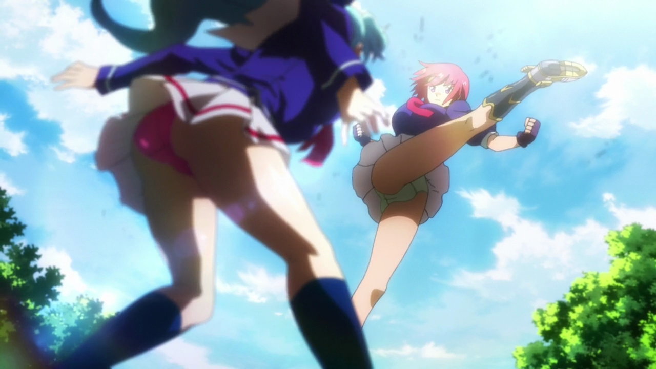 タケルを蹴り倒すうるちのパンチラ。