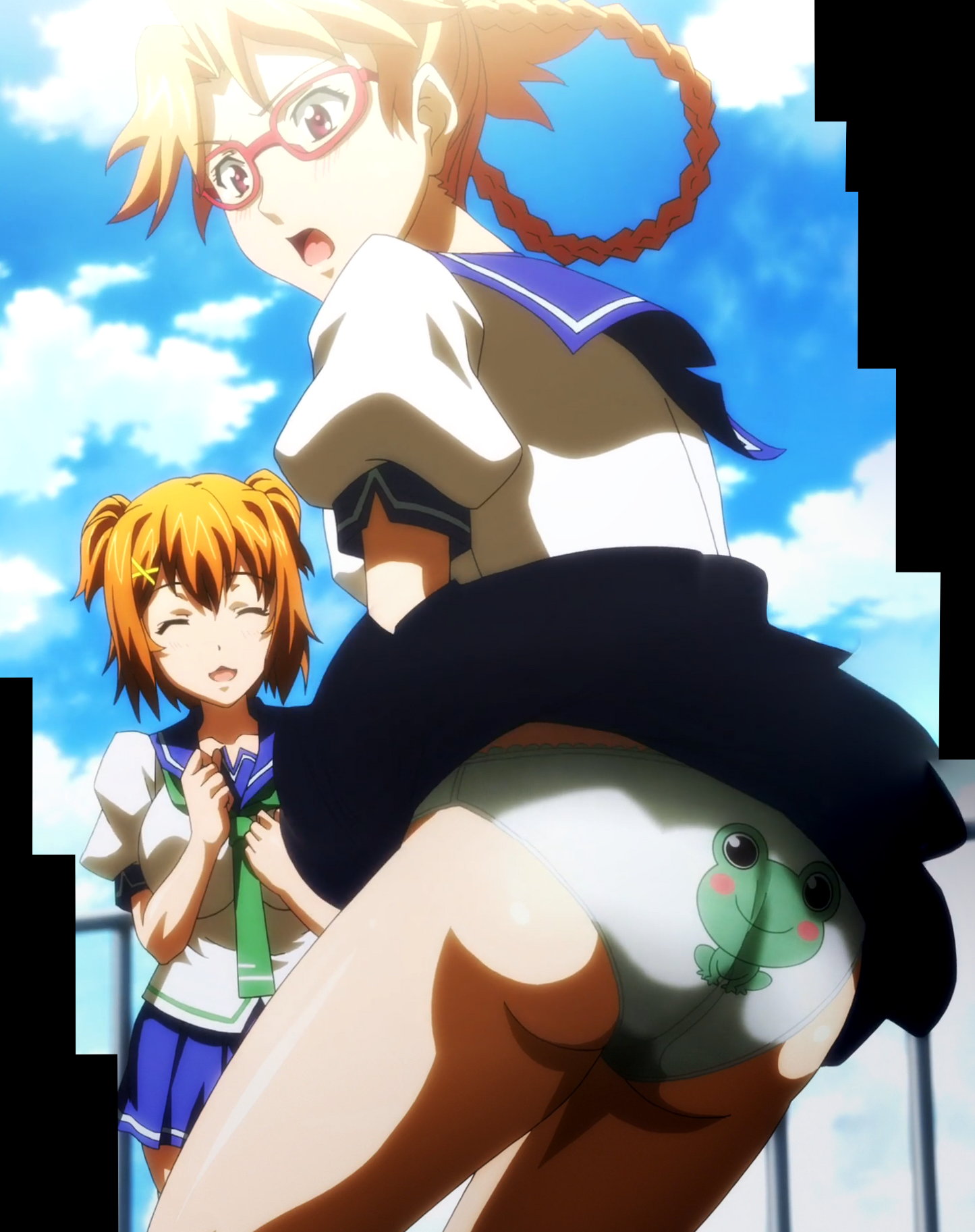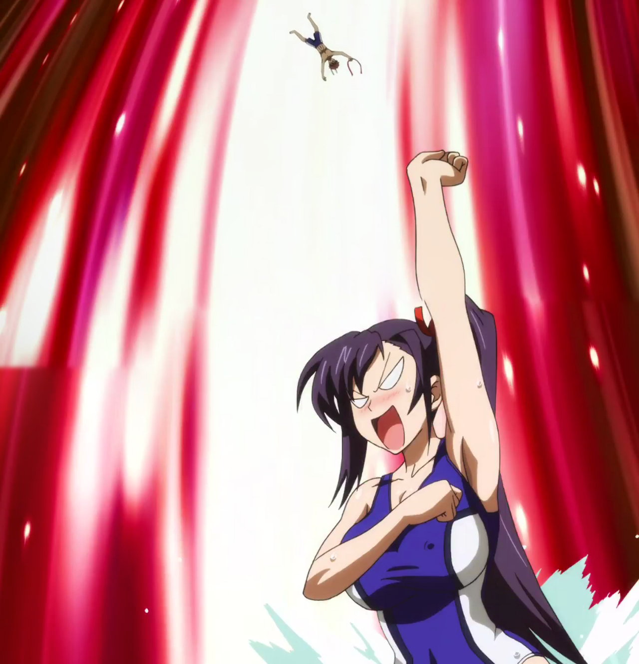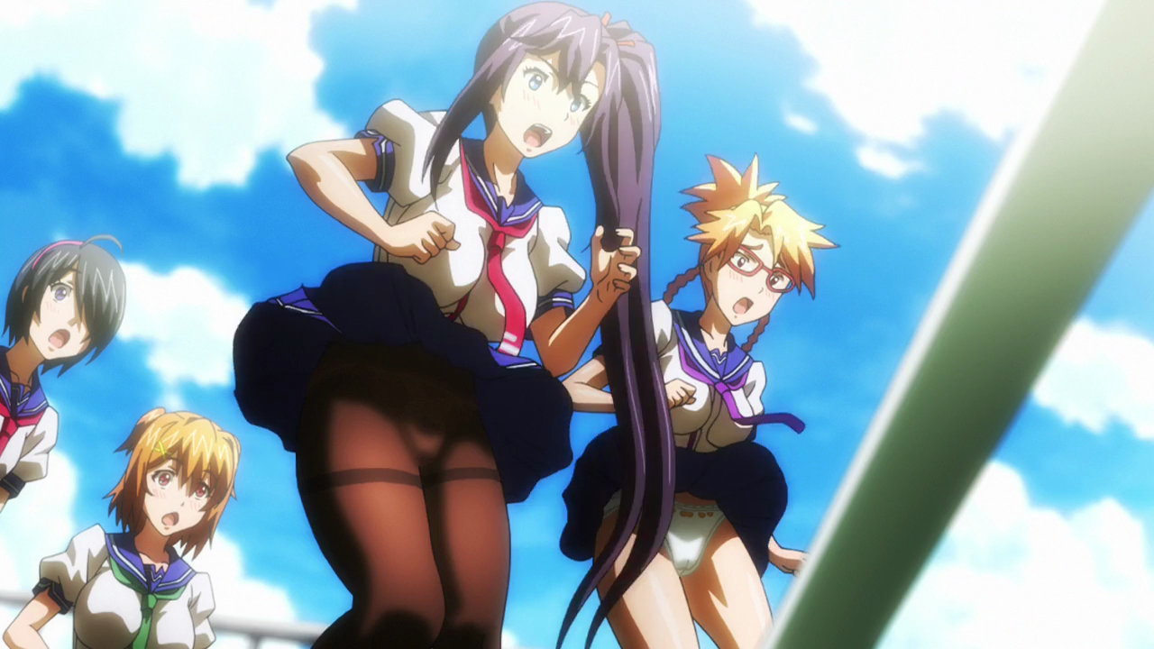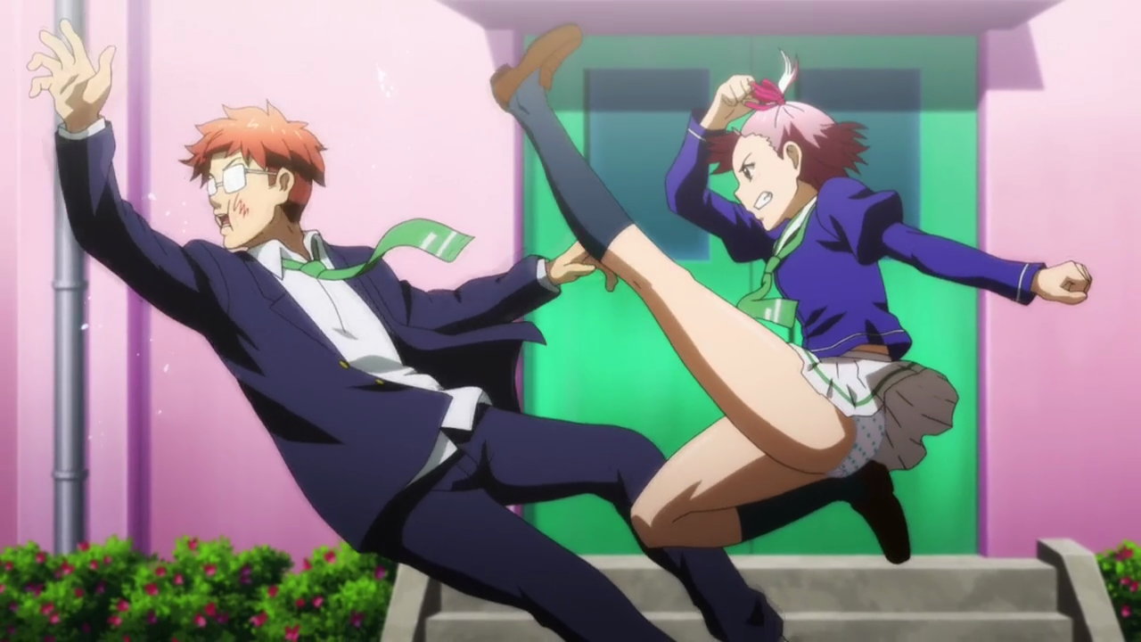 タケルを蹴り倒すうるちのパンチラ。