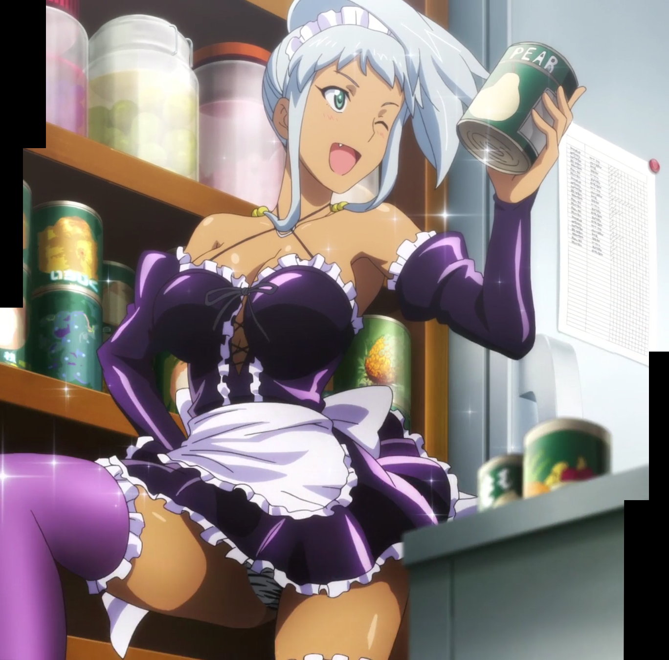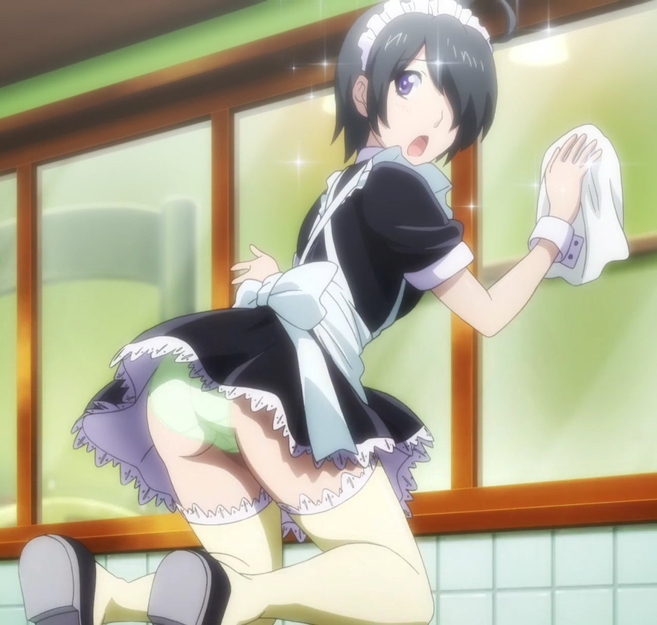 メイド服を着てパンチラするアズキ。