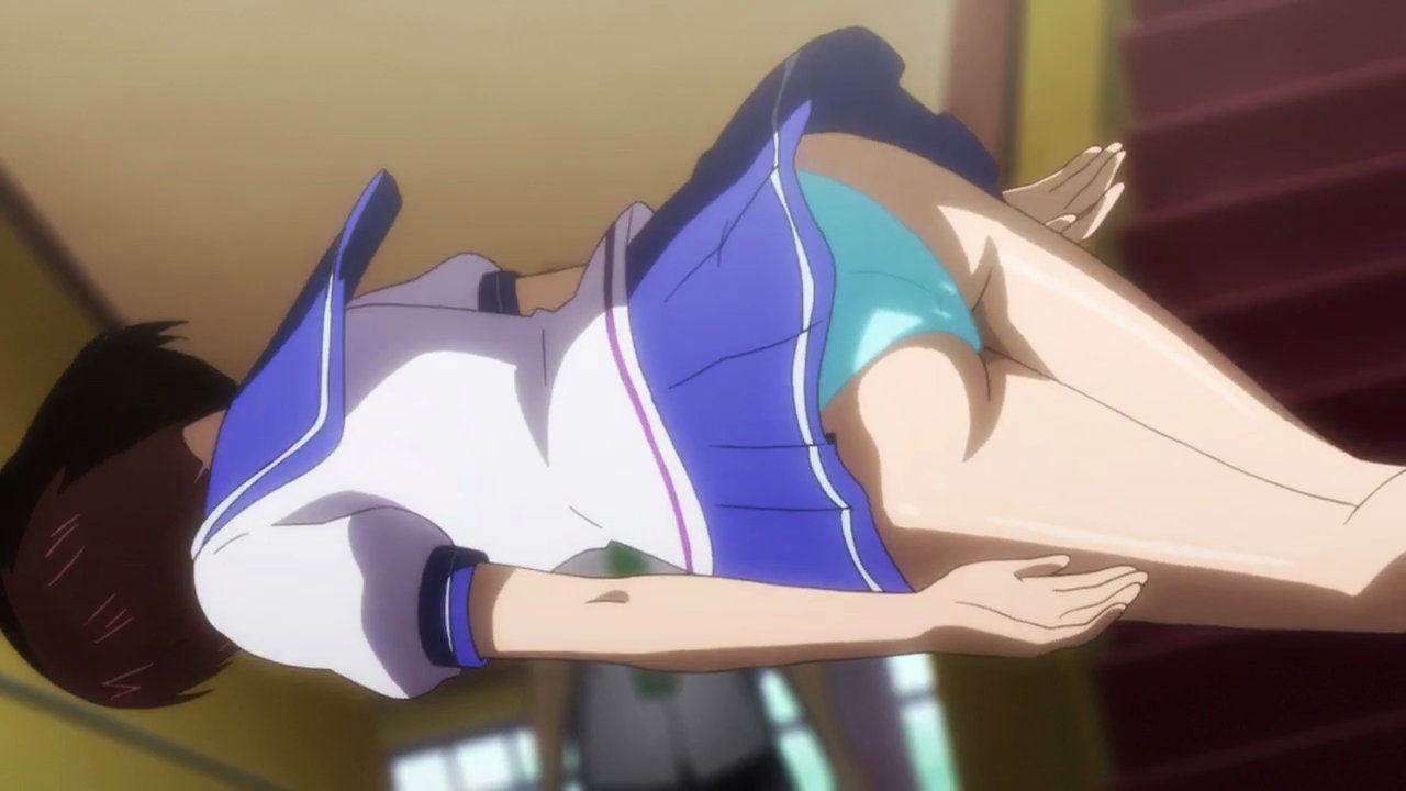 第6話B:下着姿でパンツ脱ぎかけのイナホ。
