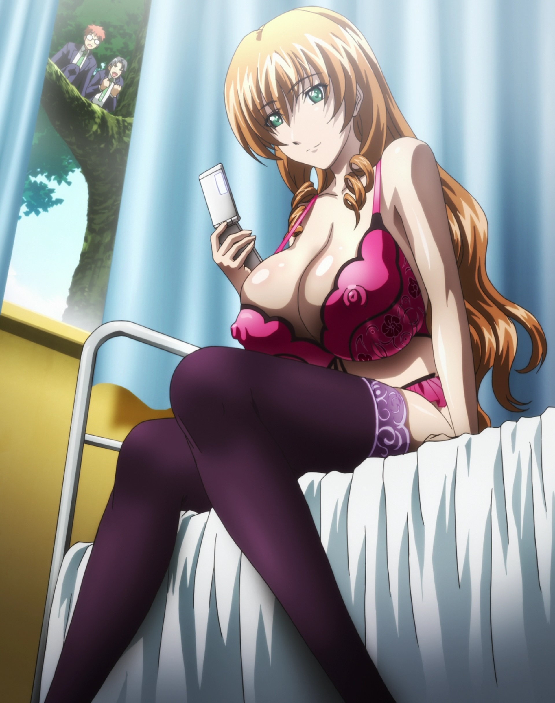 金髪巨乳美女の下着姿を見て感激する変質者二人組。