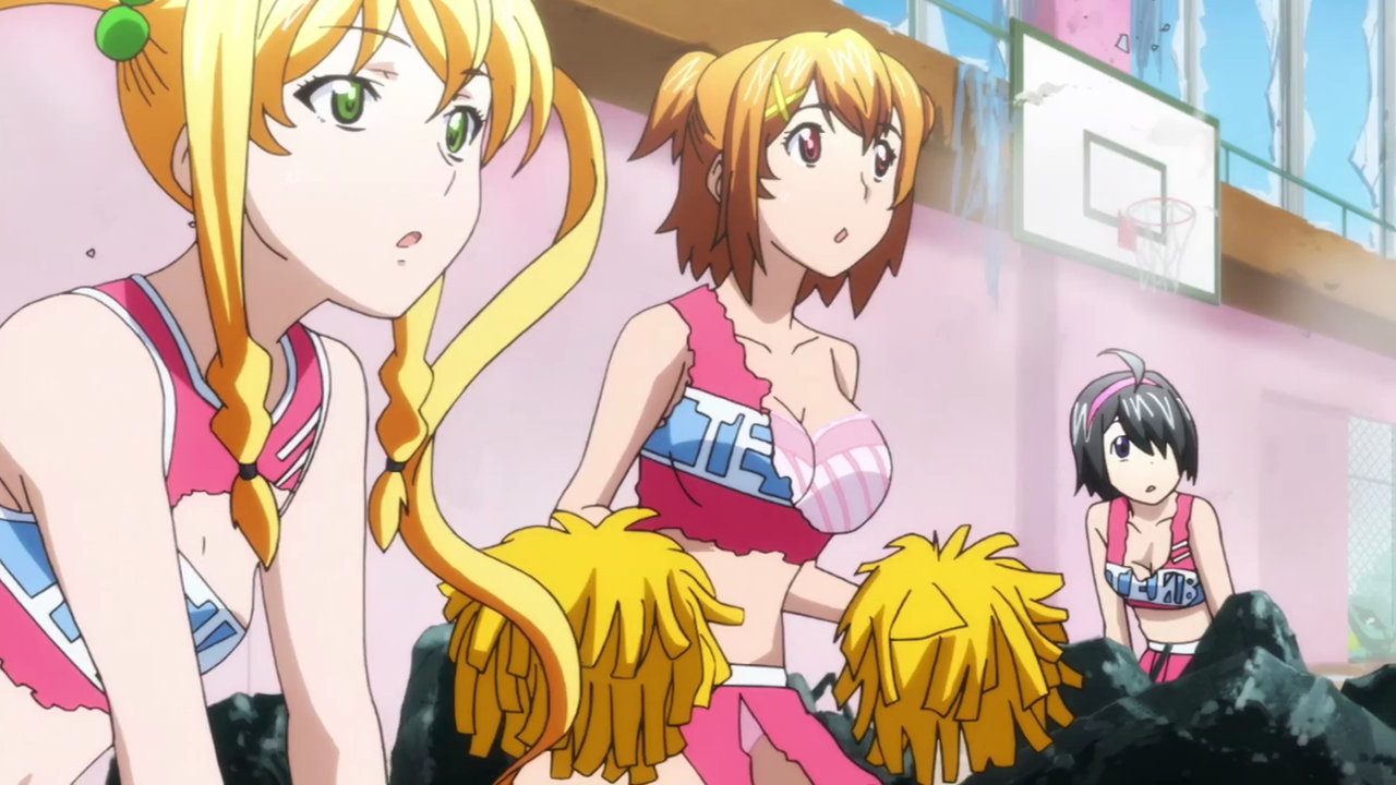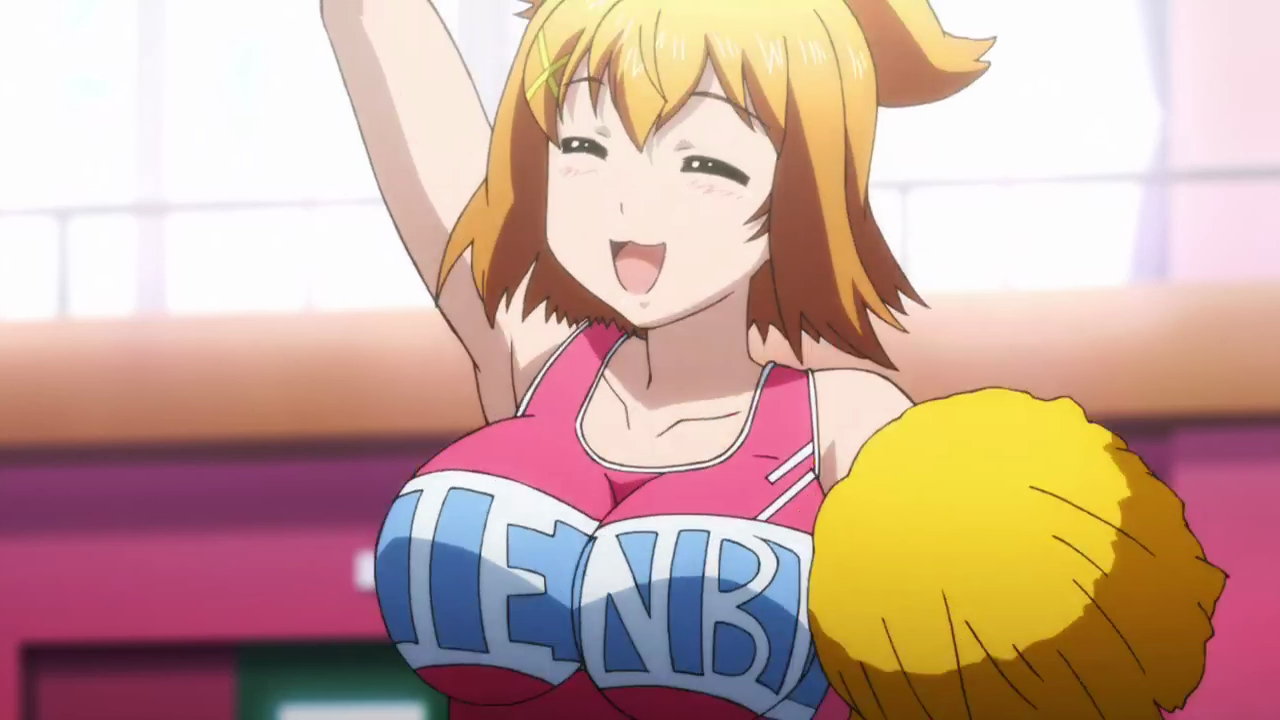 パンツを見せ、おっぱいを揺らしながら応援する、チアリーダー衣装のイナホ。