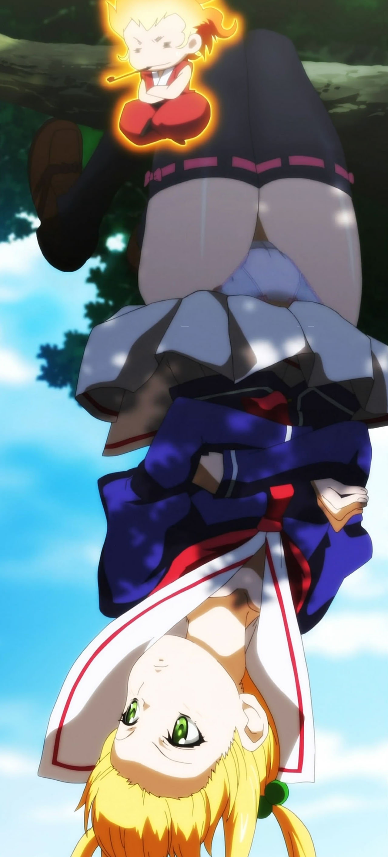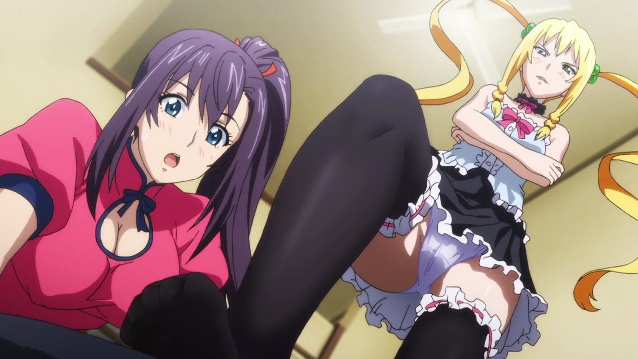 スカートが捲れてパンツ丸見えの春恋と楓蘭。
