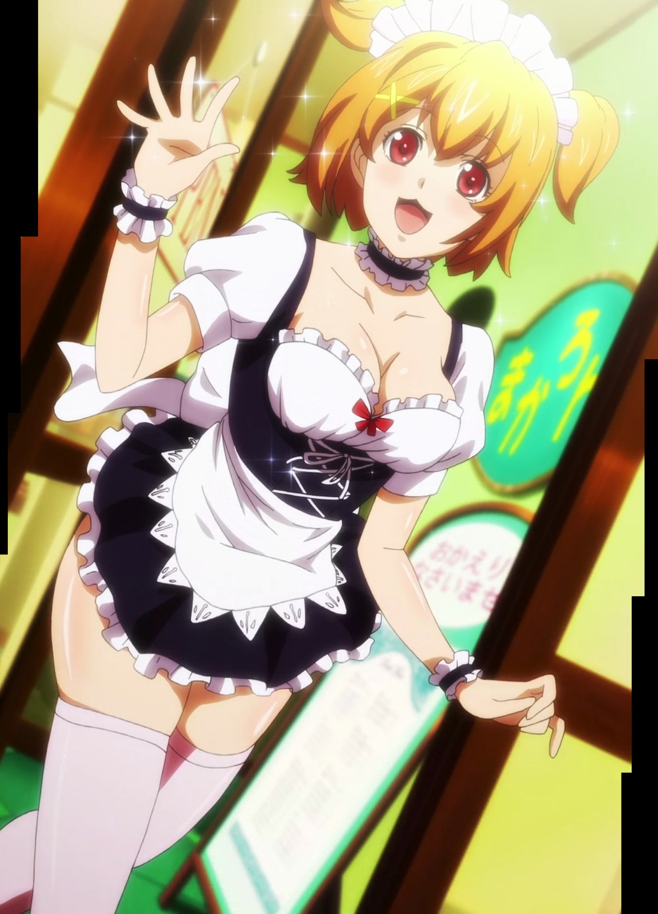メイドたちの胸の谷間およびパンチラ。