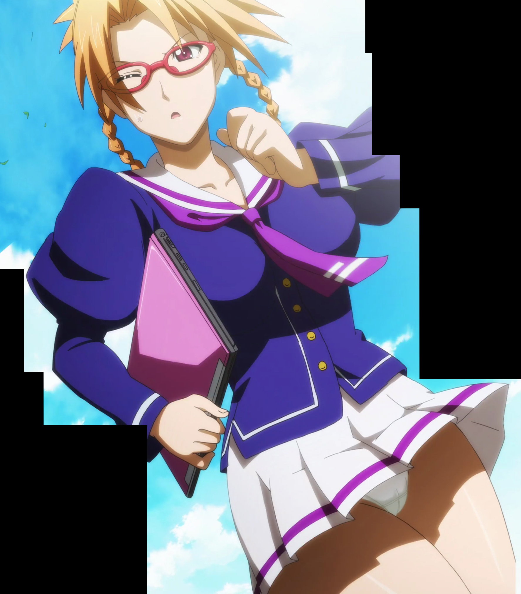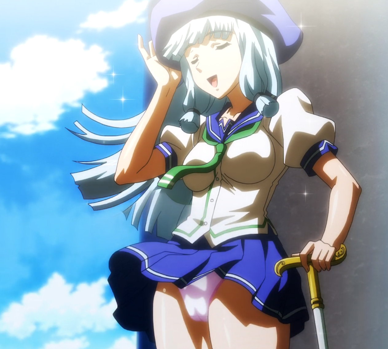 風でスカートが捲れてパンツ丸見えのミネルバ。