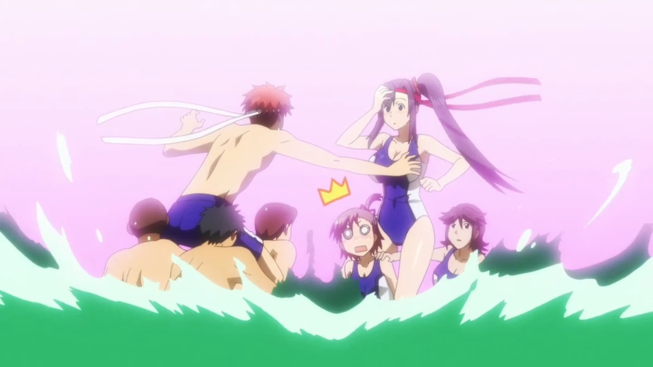 水上騎馬戦にて、春恋にパイタッチするタケル。