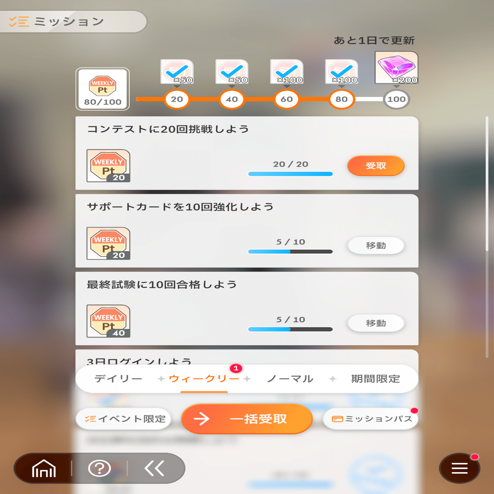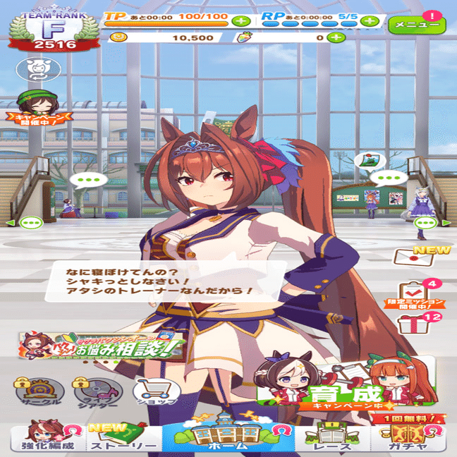 比較のために一度人気ソーシャルゲームであるウマ娘のメイン画面を見てみましょう。