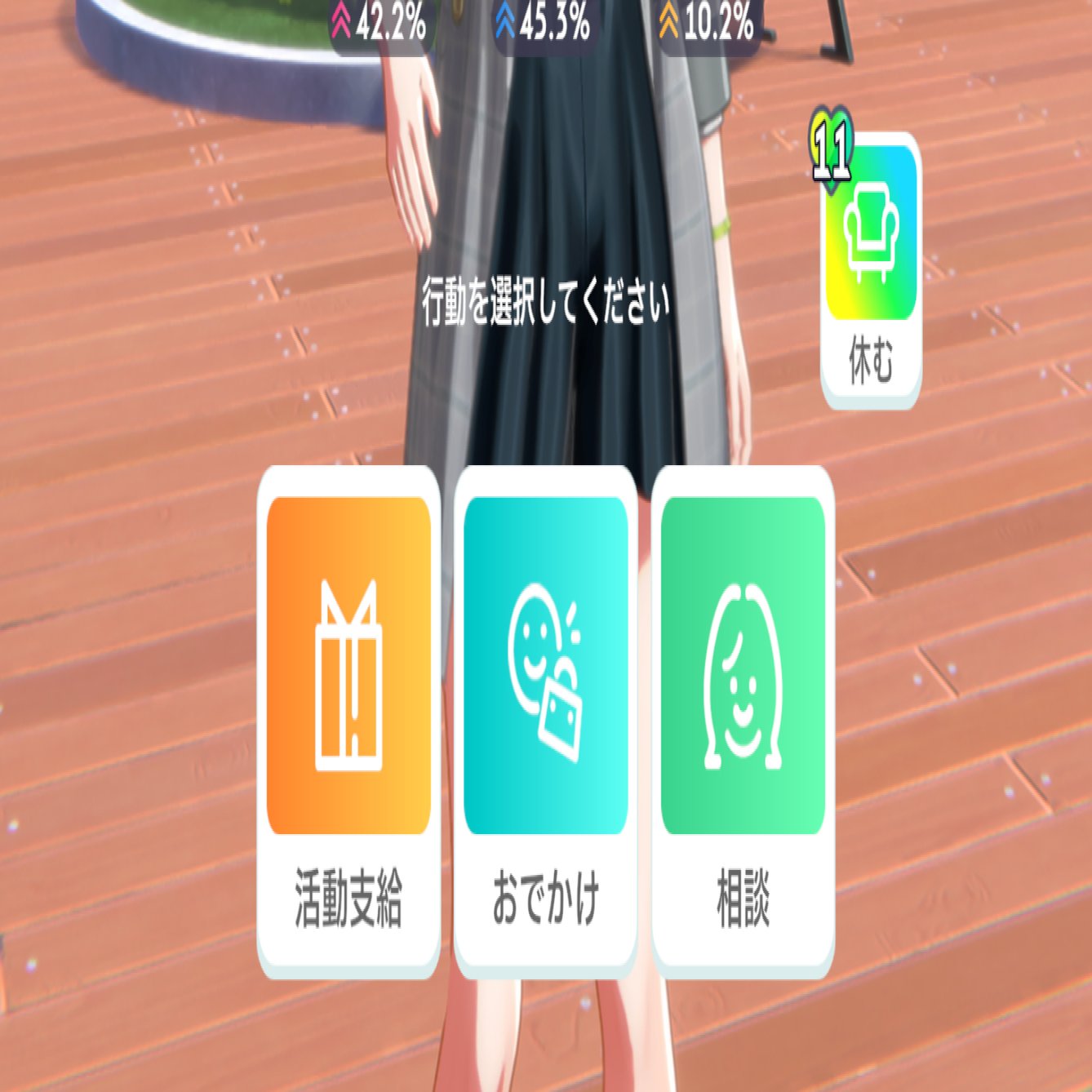 次はプロデュース中の画面を見てみましょう。