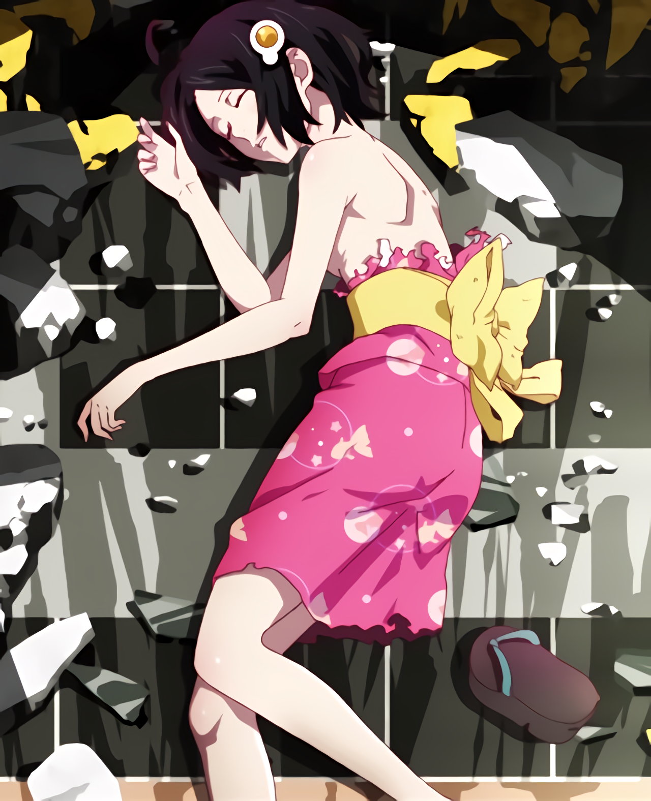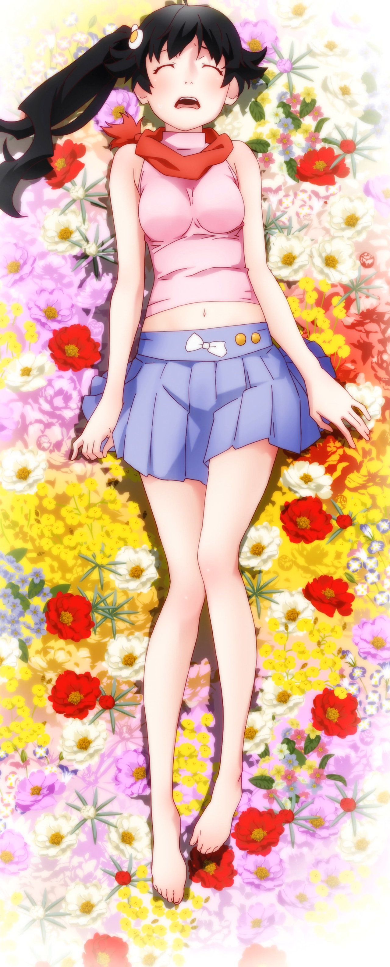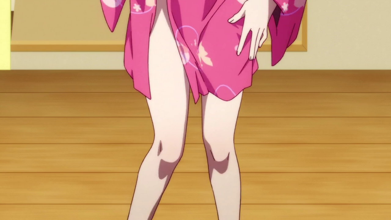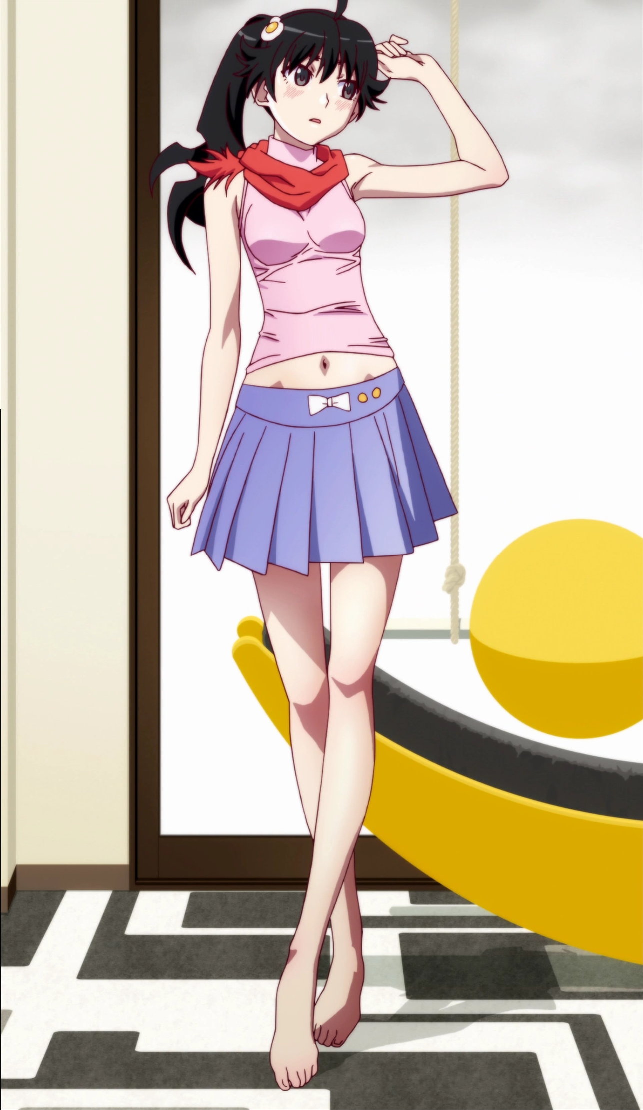 火憐の臍チラおよび生脚・裸足。