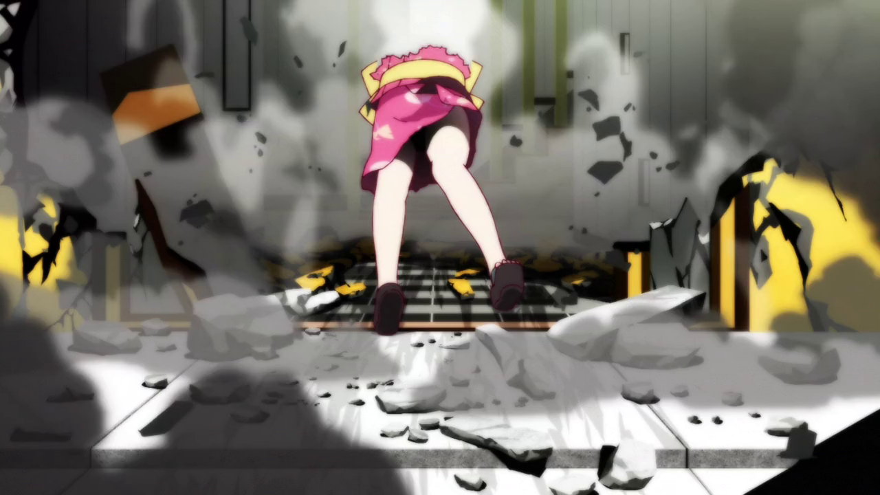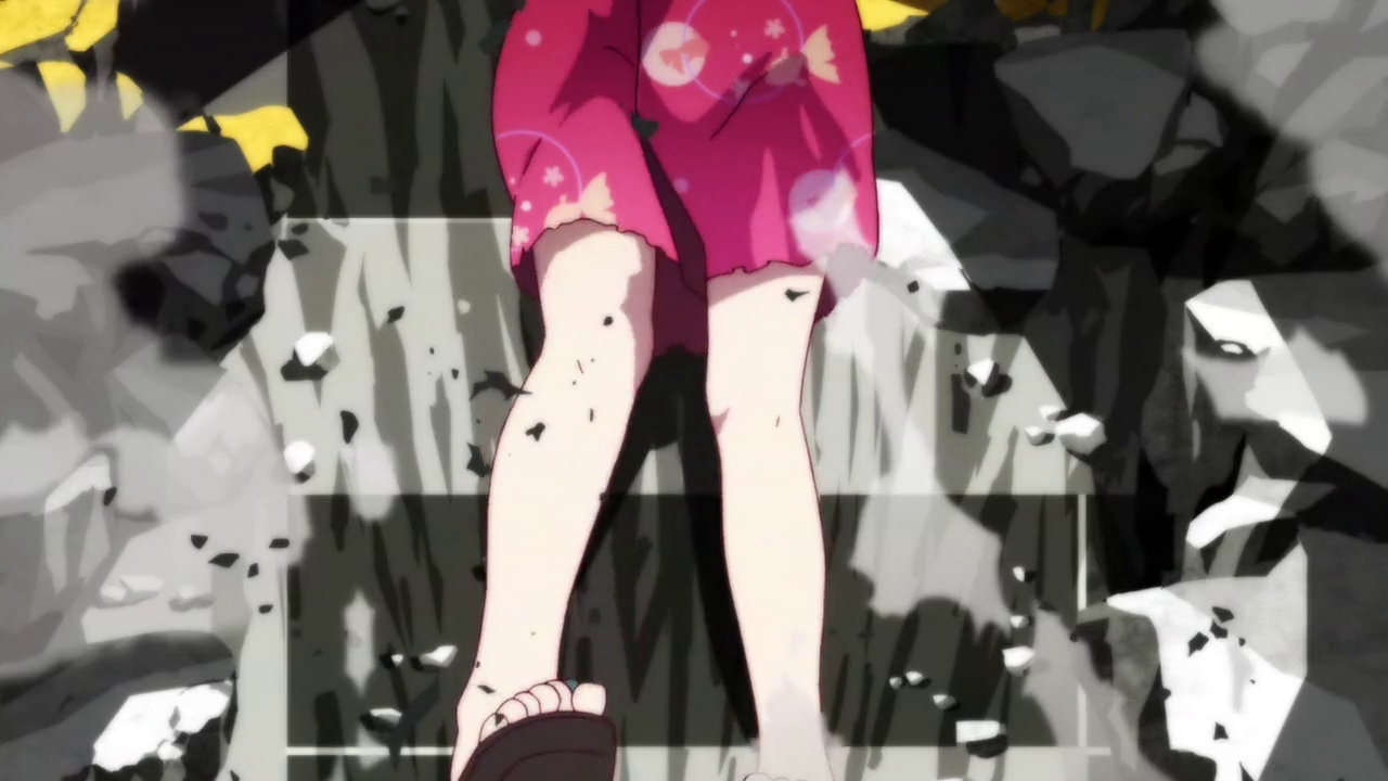 火憐のパンチラ・臍チラ・生脚・裸足裏。