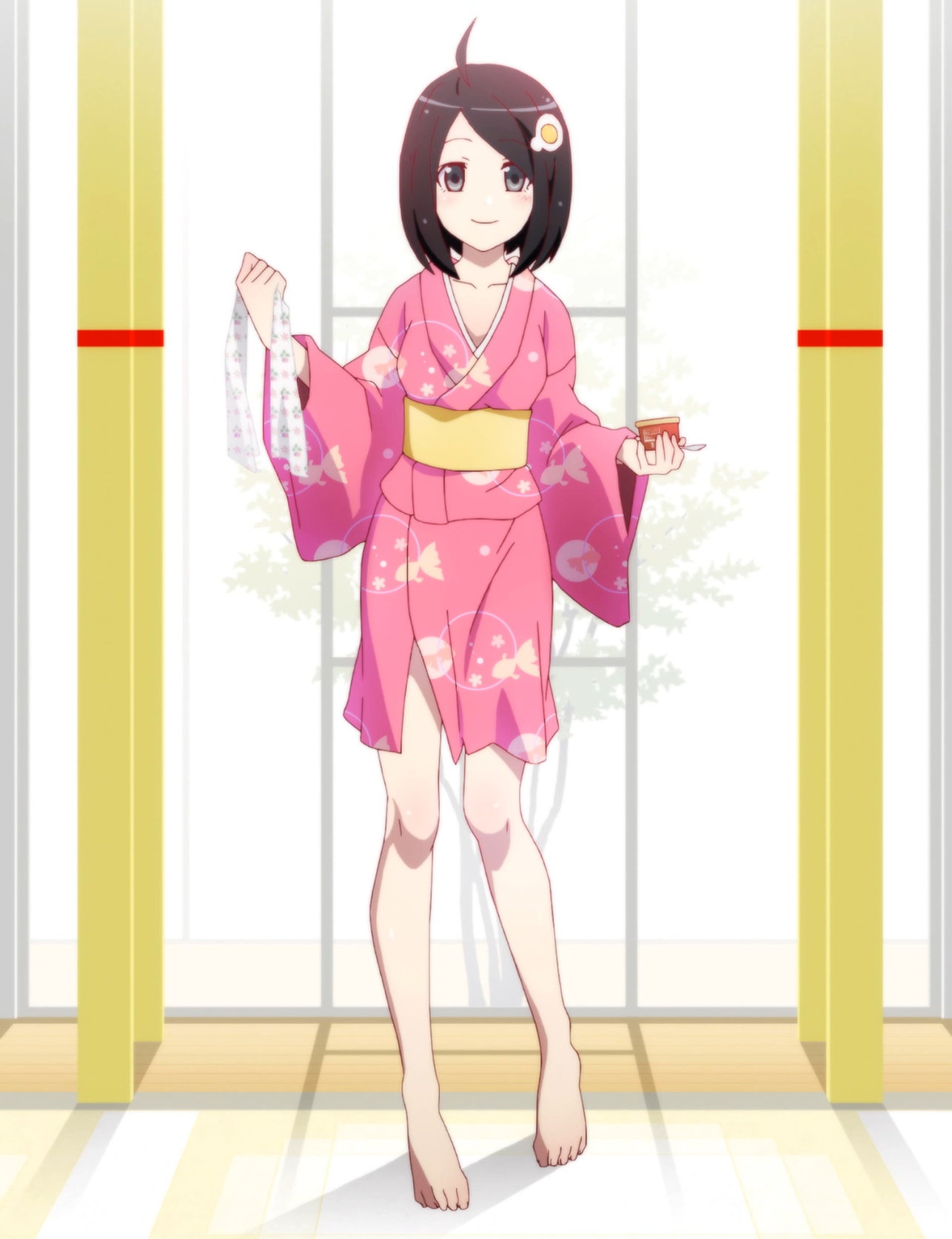 浴衣を着た月火の生脚・裸足。