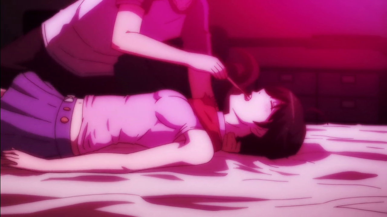 性交寸前の暦と火憐の様子を目撃する月火。