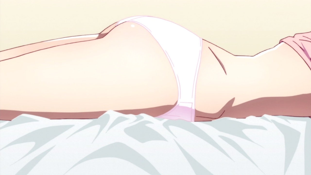 暦に押し倒された、パンツ一丁の月火。