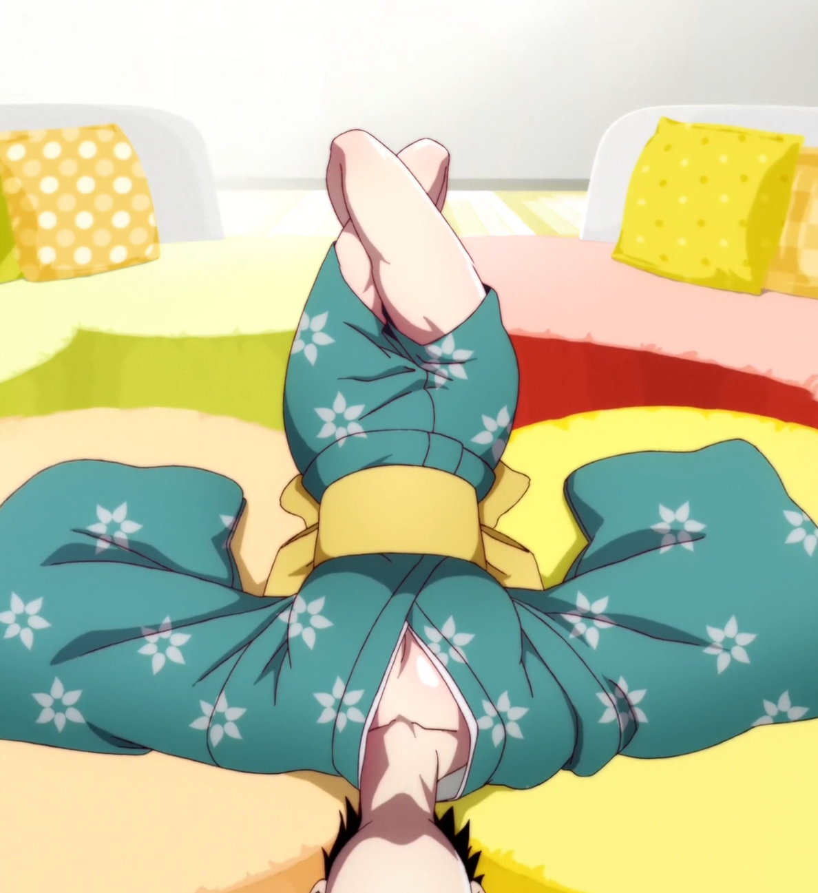 浴衣を着て寝ている月火の生脚。