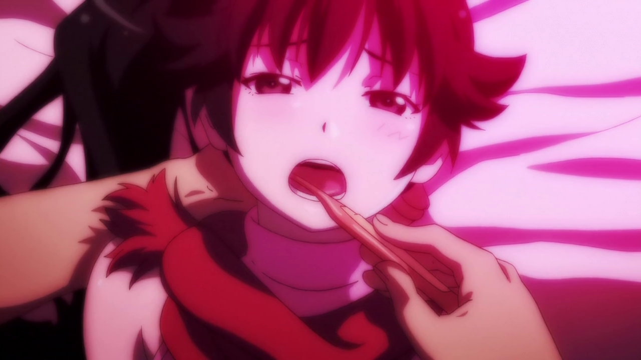 発熱により赤面している火憐。
