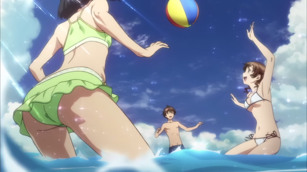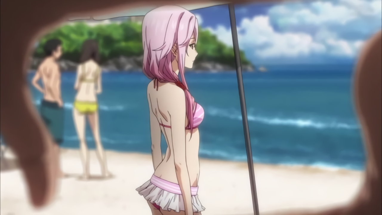 いのりの水着姿を撮影しようと試みる颯太。