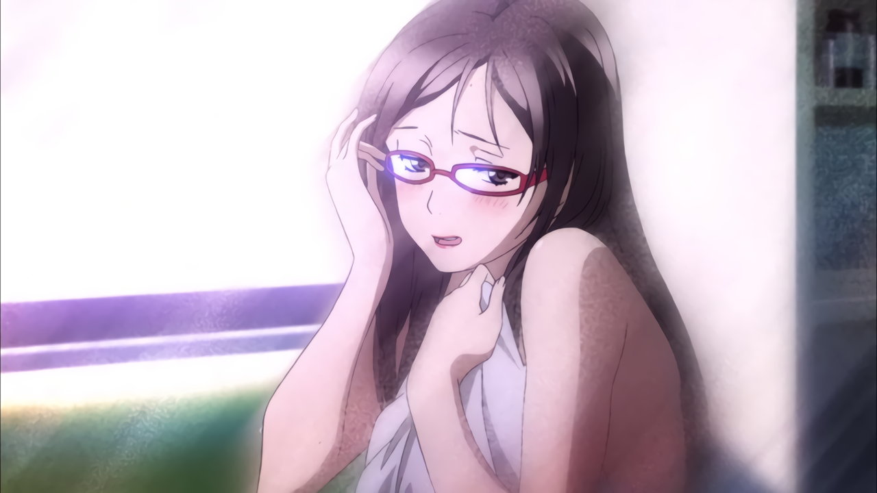 恥じらう事後の冴子。