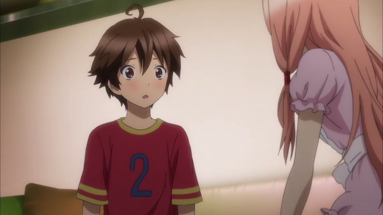 集(幼少期)に告白する真名の胸チラ。