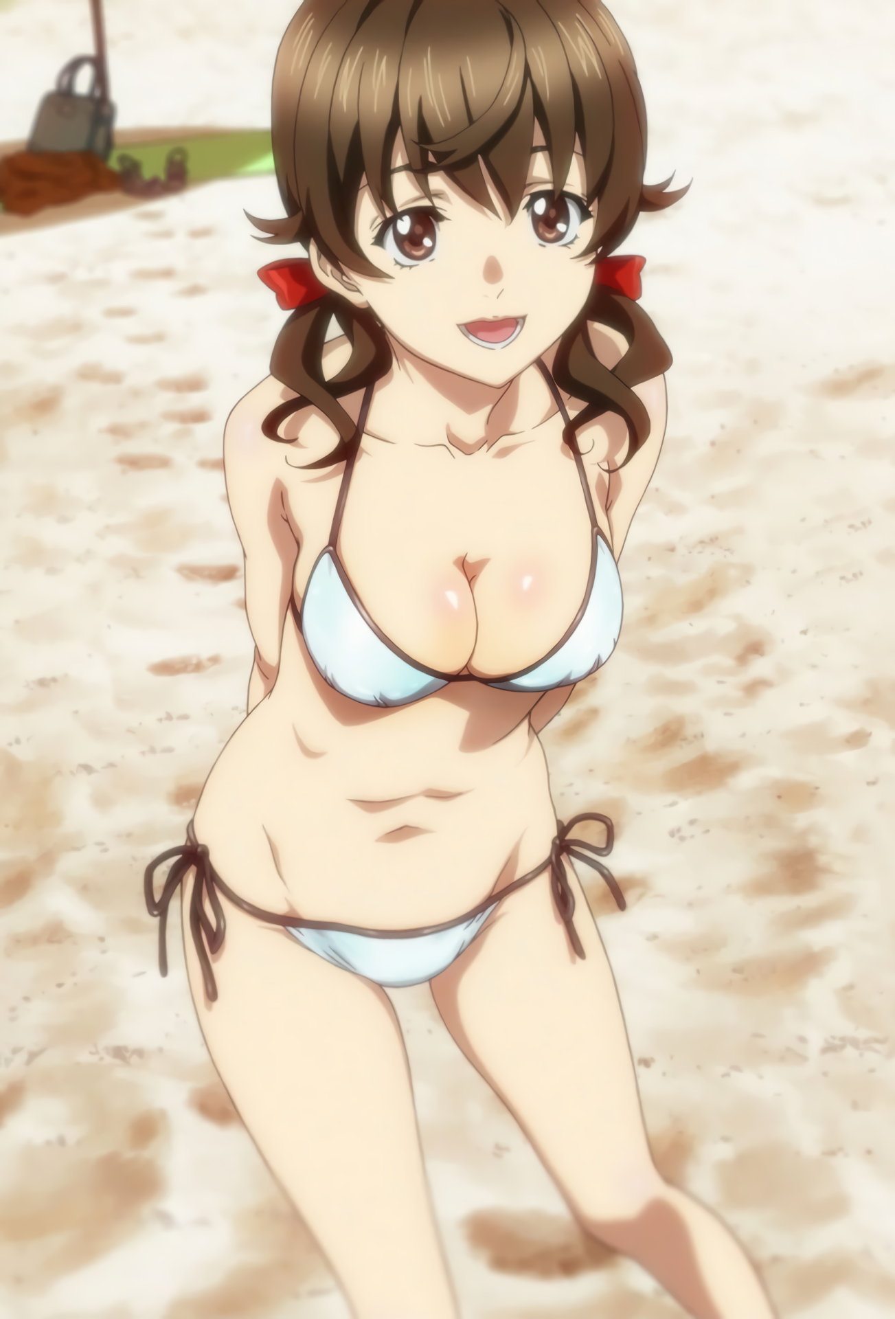 集にビキニ姿と胸の谷間を見せる祭。