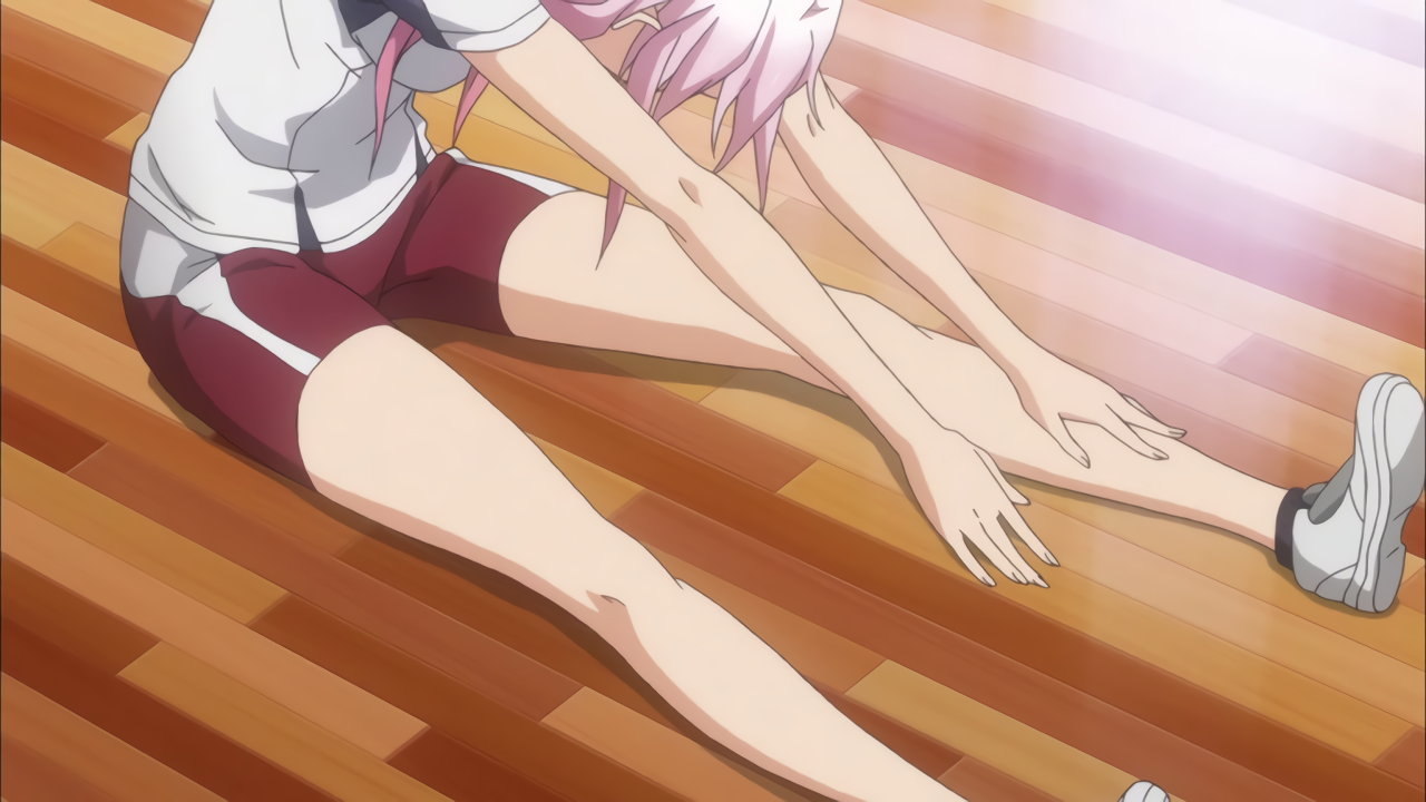 準備体操する体操着のいのり。