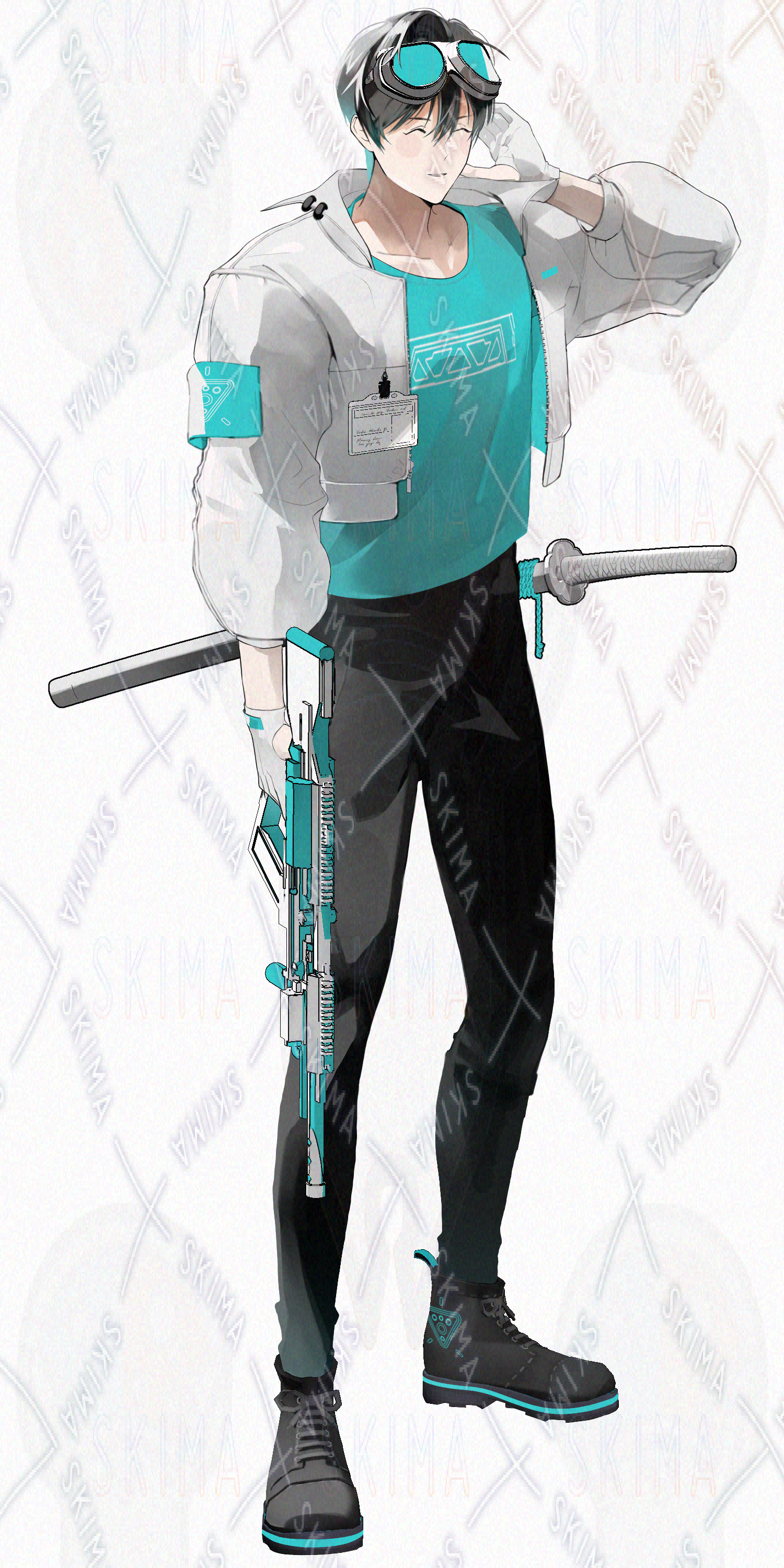 サイバーパンク/男性/水色/Y2K/マダミス/武器
