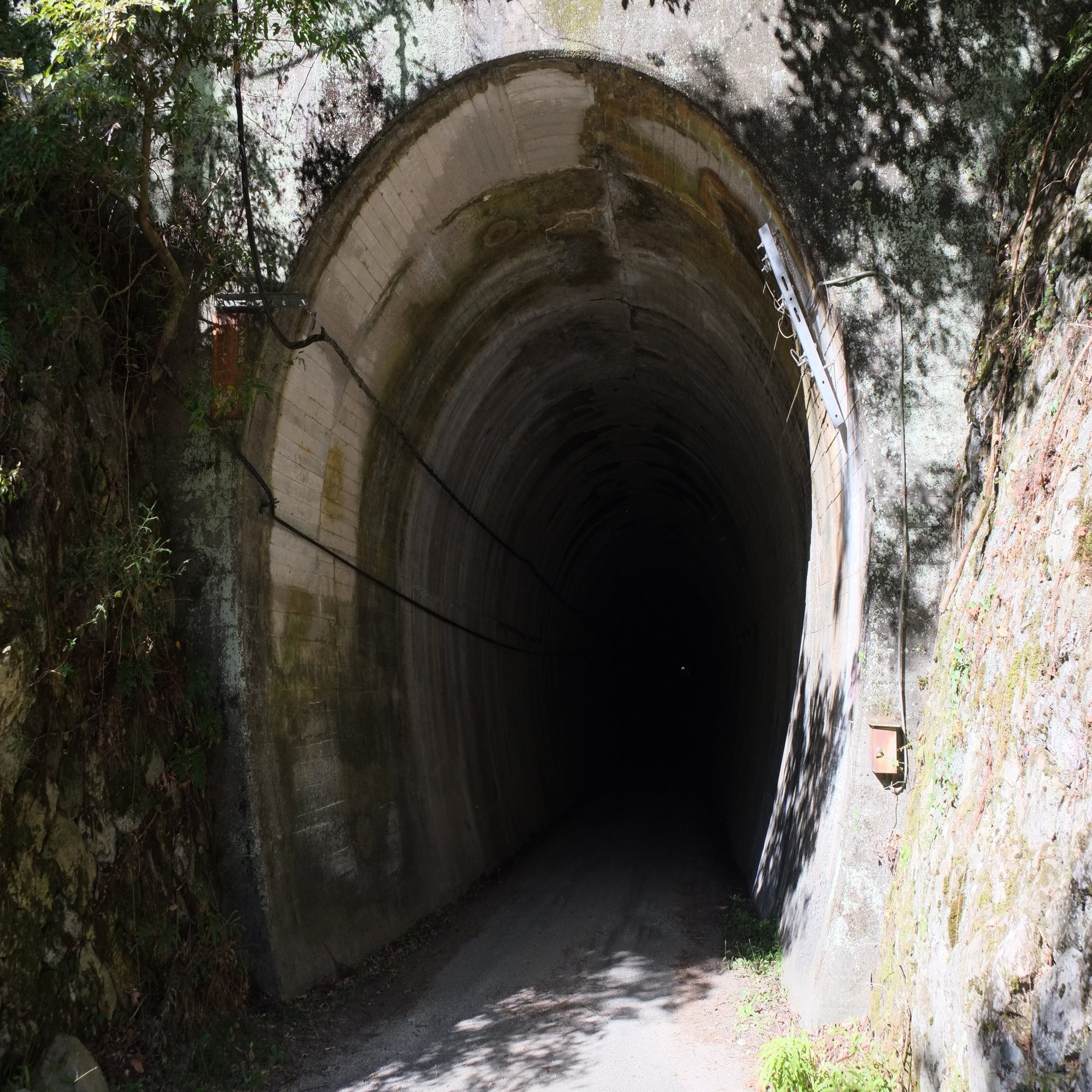 この夏焼隧道は、2つのトンネル(隧道)で構成され、駅から遠い方の2つ目の夏焼第二隧道が、暗いわ、長いわ(1キロ以上あります)、寒いわ、おまけに上から水は降ってくるわで秘境集落までの道のりとして満点の雰囲気です。ちなみに、かつてはここを飯田線が通っていたようです。