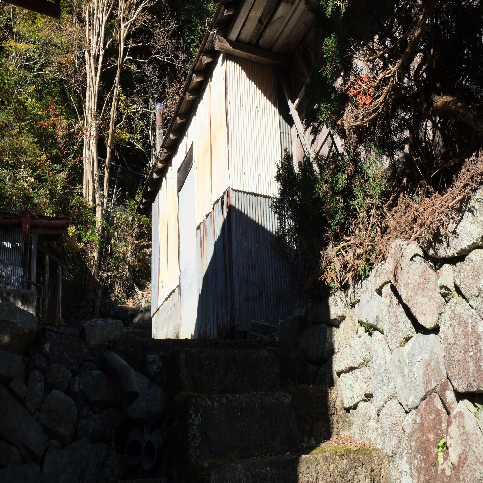 音の方向からして、どうやら先程の石段を上がってきたところの一番下のお家から聞こえるようです。