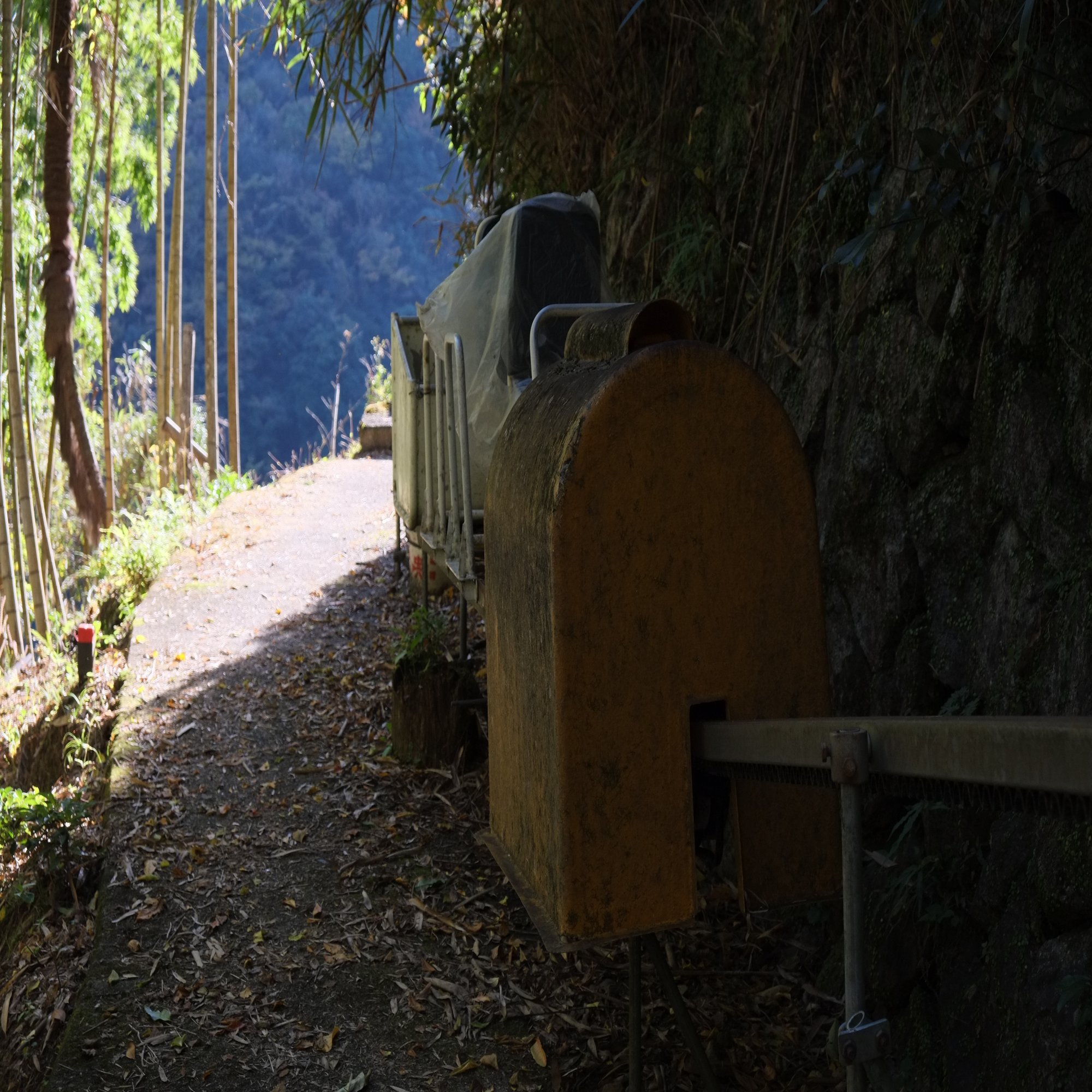こうして山道をえっちらおっちらと登ると、これまた夏焼集落のランドマークの一つであるモノレールが見えてきます。