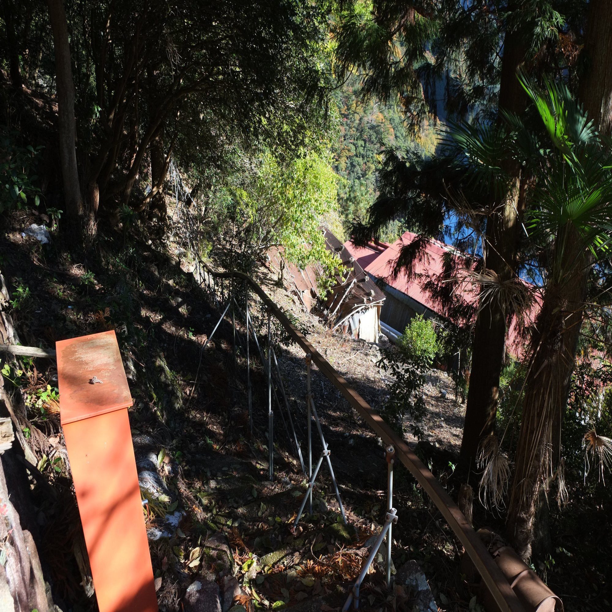 さらに、モノレールの奥に顔を覗かせる石段を上がると、ついに、集落らしきものが見えてきました。どうやらここが噂の夏焼集落のようです。