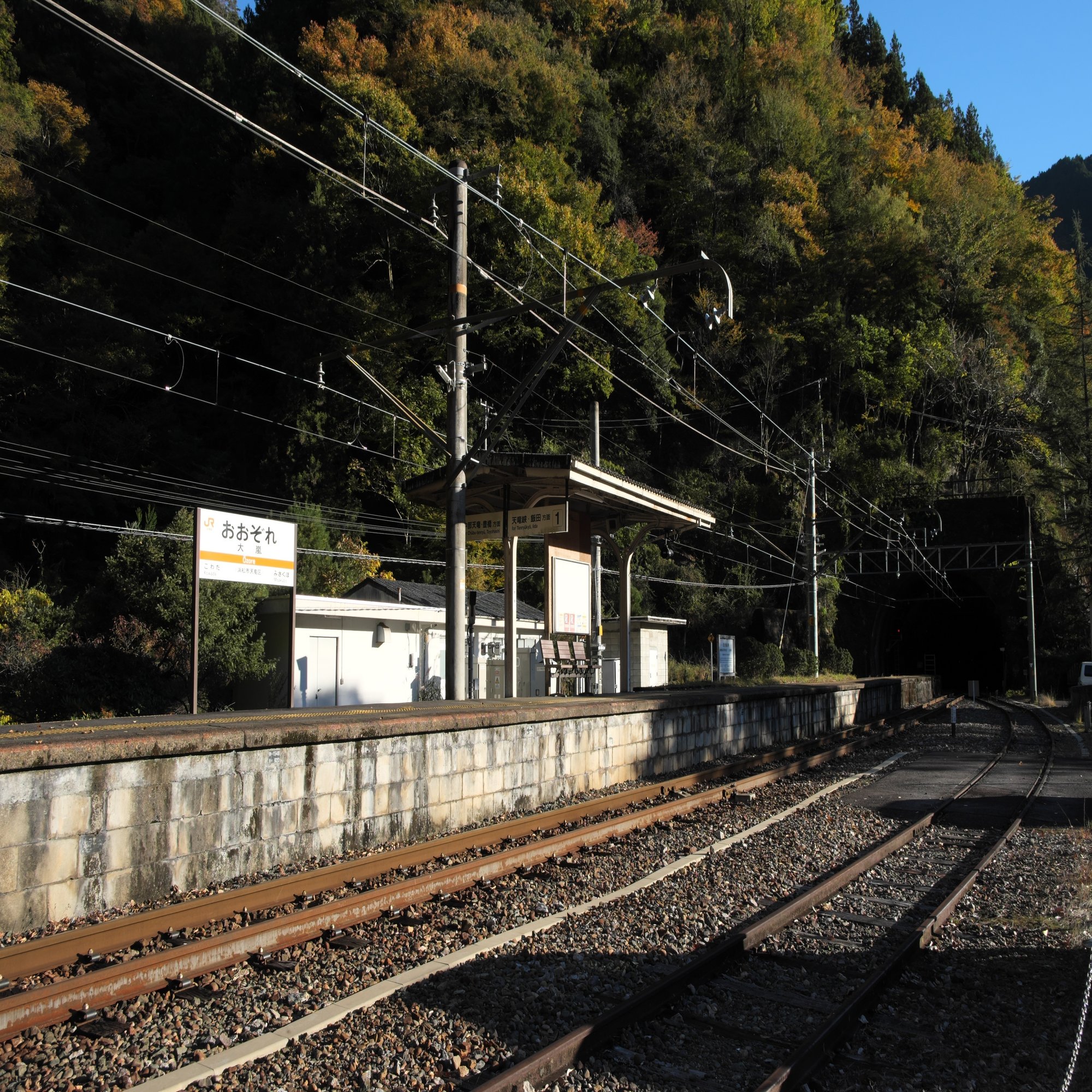 というわけで、しがないサラリーマンが休みを取って走りに来た天竜川下りのサイクリングは、あえなく天竜川のちょうど真ん中あたり、この大嵐駅で終了となってしまいました。