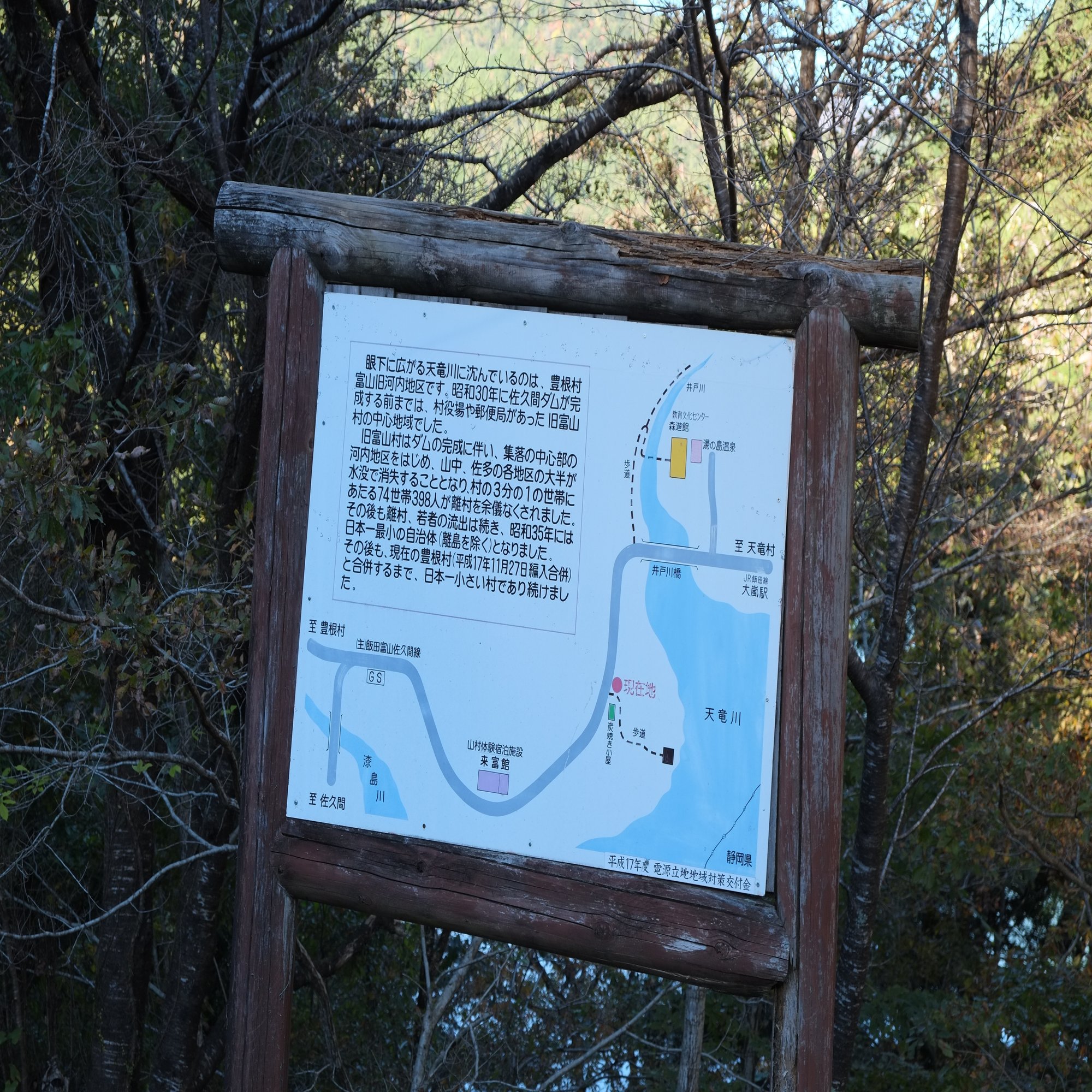 夏焼集落の目の前のいま天竜川が流れるあたりには昔小さな村があったが、それが佐久間ダムの建設によって沈んでしまったこと。
