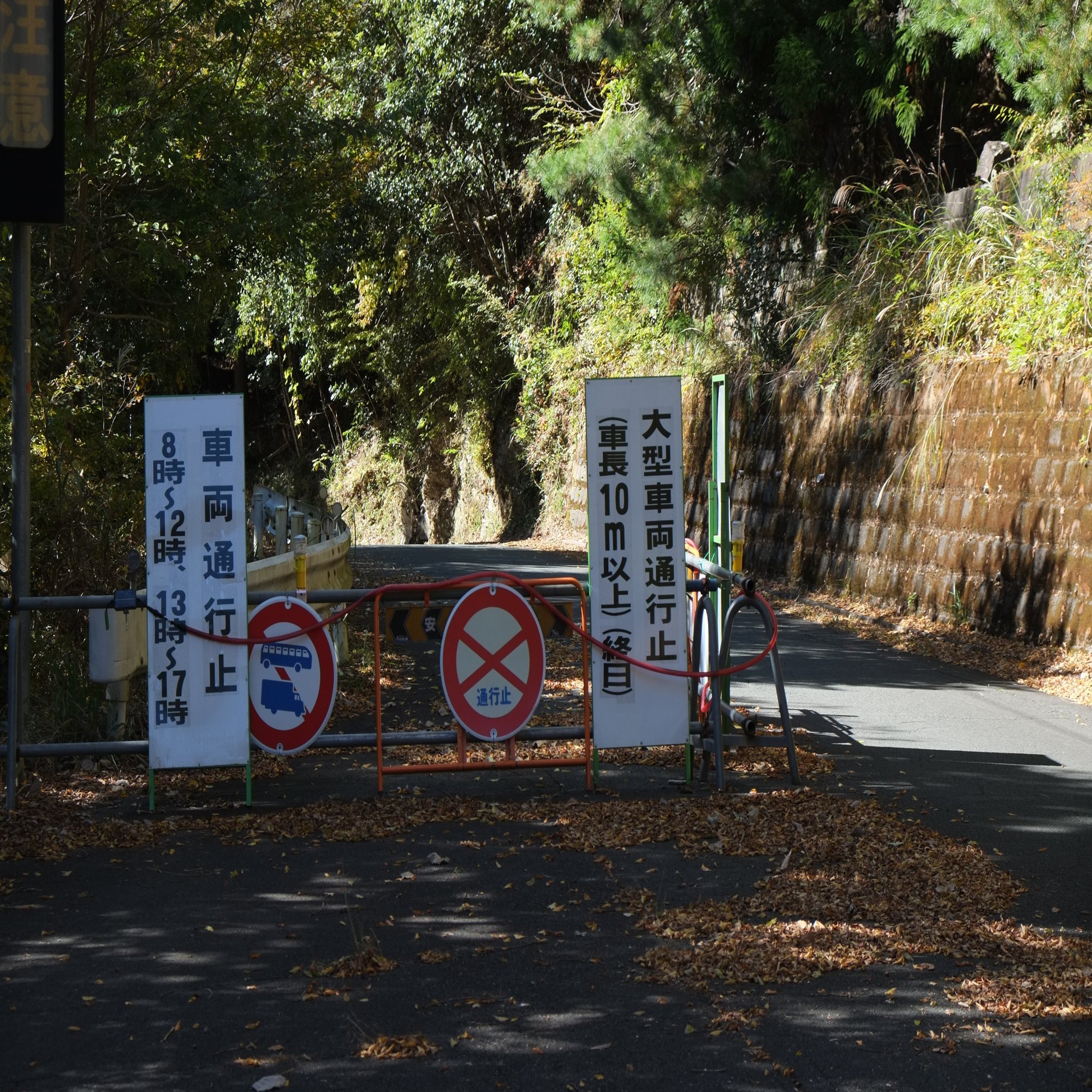 しかし、ロープの右側が明らかに人が通れるような高い位置に留めてあること、右側に一時停止の標識がこれ見よがしに置いてあることから、どうやら立入禁止という意図ではなく、誤って車が入ってしまわないように張られたものに見受けられます。