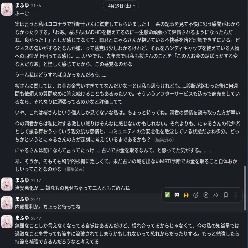 そして、MBTI界隈の馴れ合いとスパム汚染に至っては去年から何度も言ってる。今にして思えば、それもほぼあのマルチ連中を暗に指してた訳だけど、