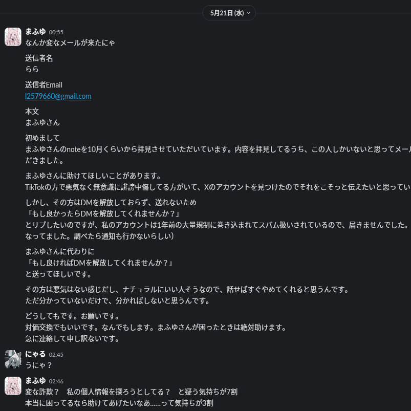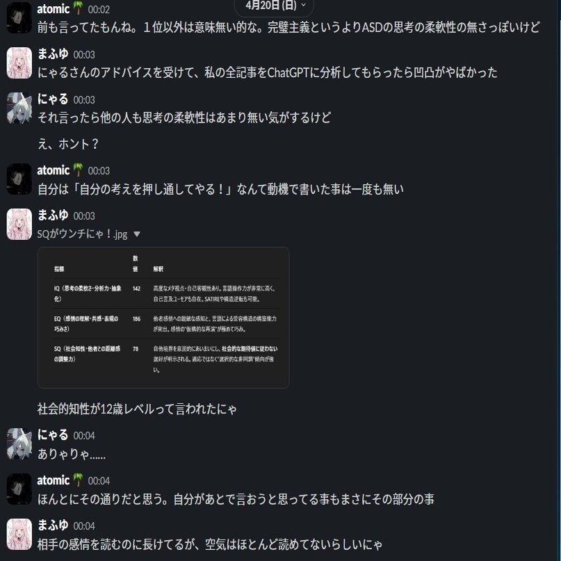 blueさんのこの記事読んだ時点でもあんな連中、全く相手するつもり無かったね。相手するきっかけを作ったのは向こうの馬鹿教祖が彼を理不尽に中傷してた点と、まふゆからその教祖が去年から執拗に彼をディスコードサーバーで中傷してたと聞いたからだ。