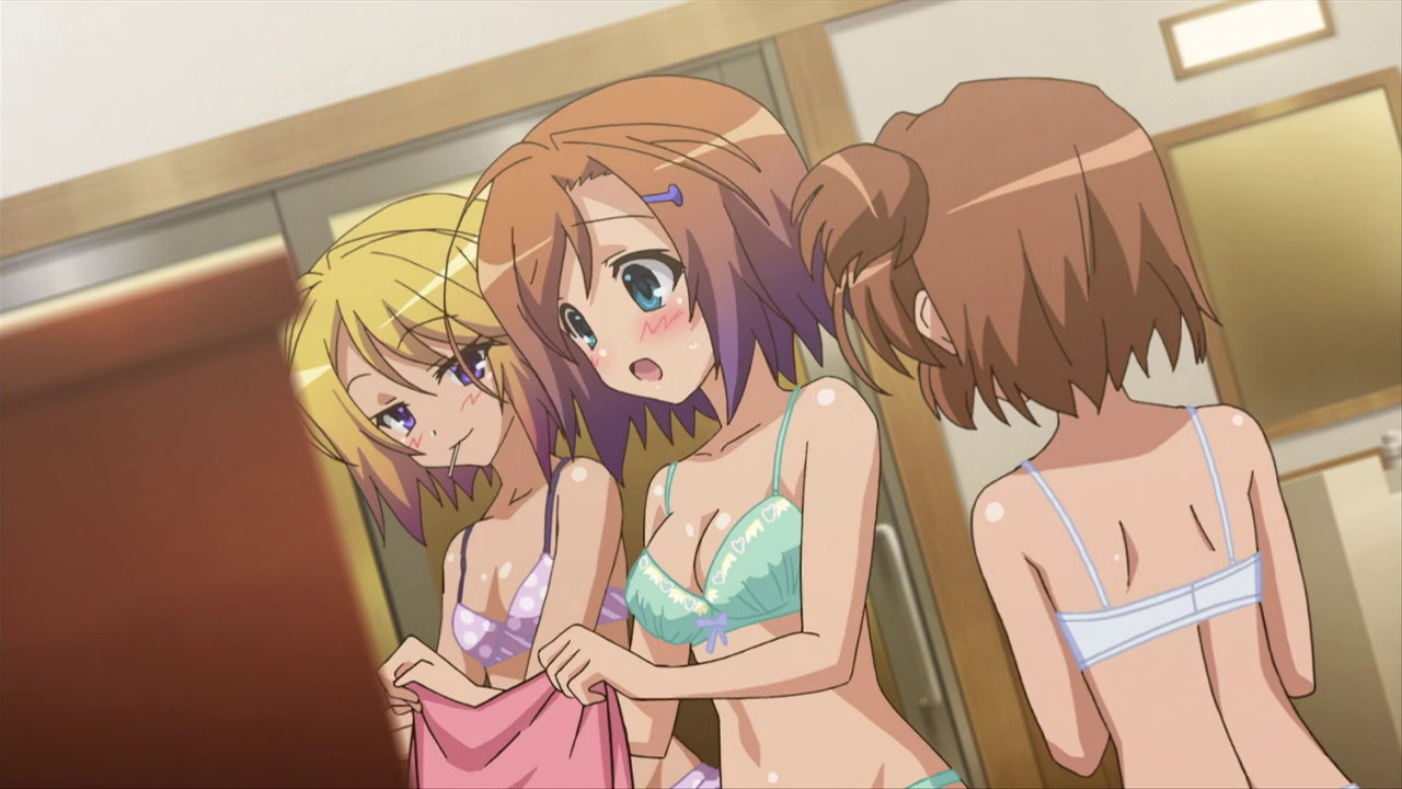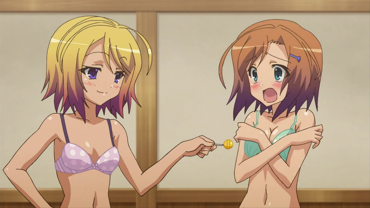 遥の巨乳と自分の乳房の大きさを見比べるヒメア。