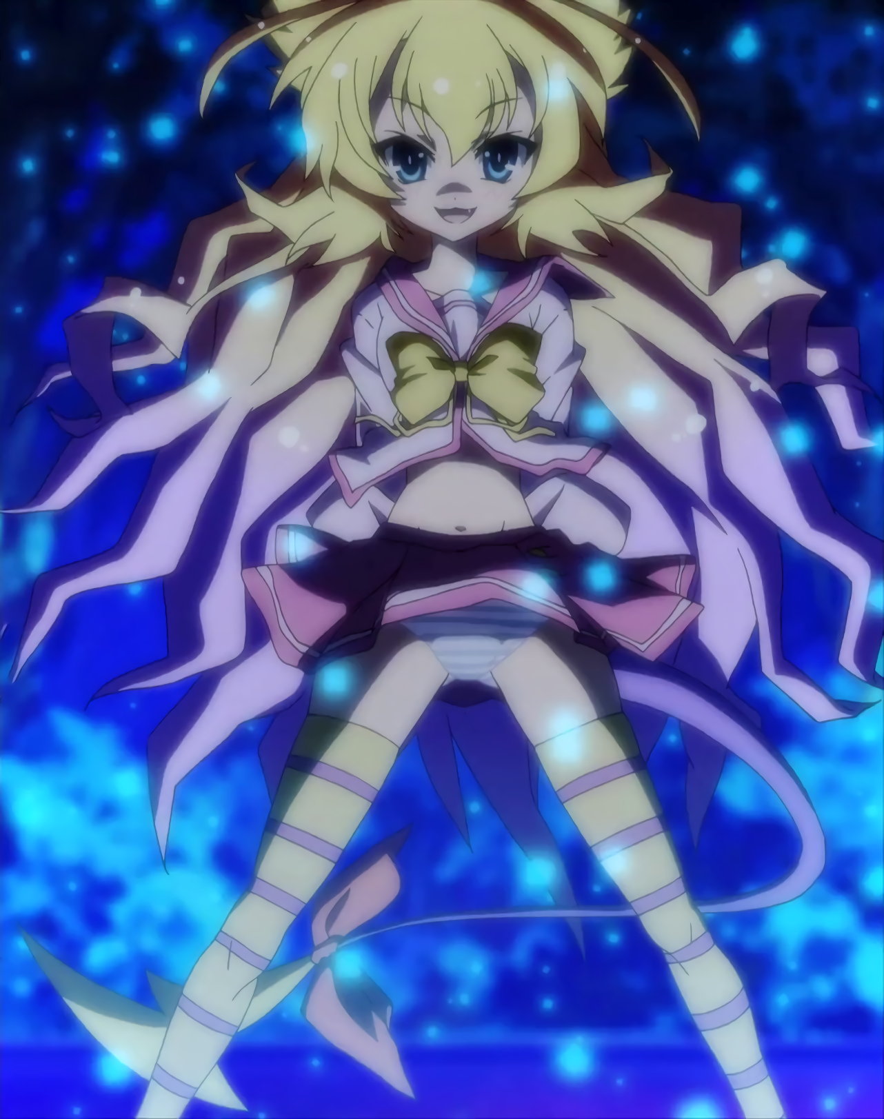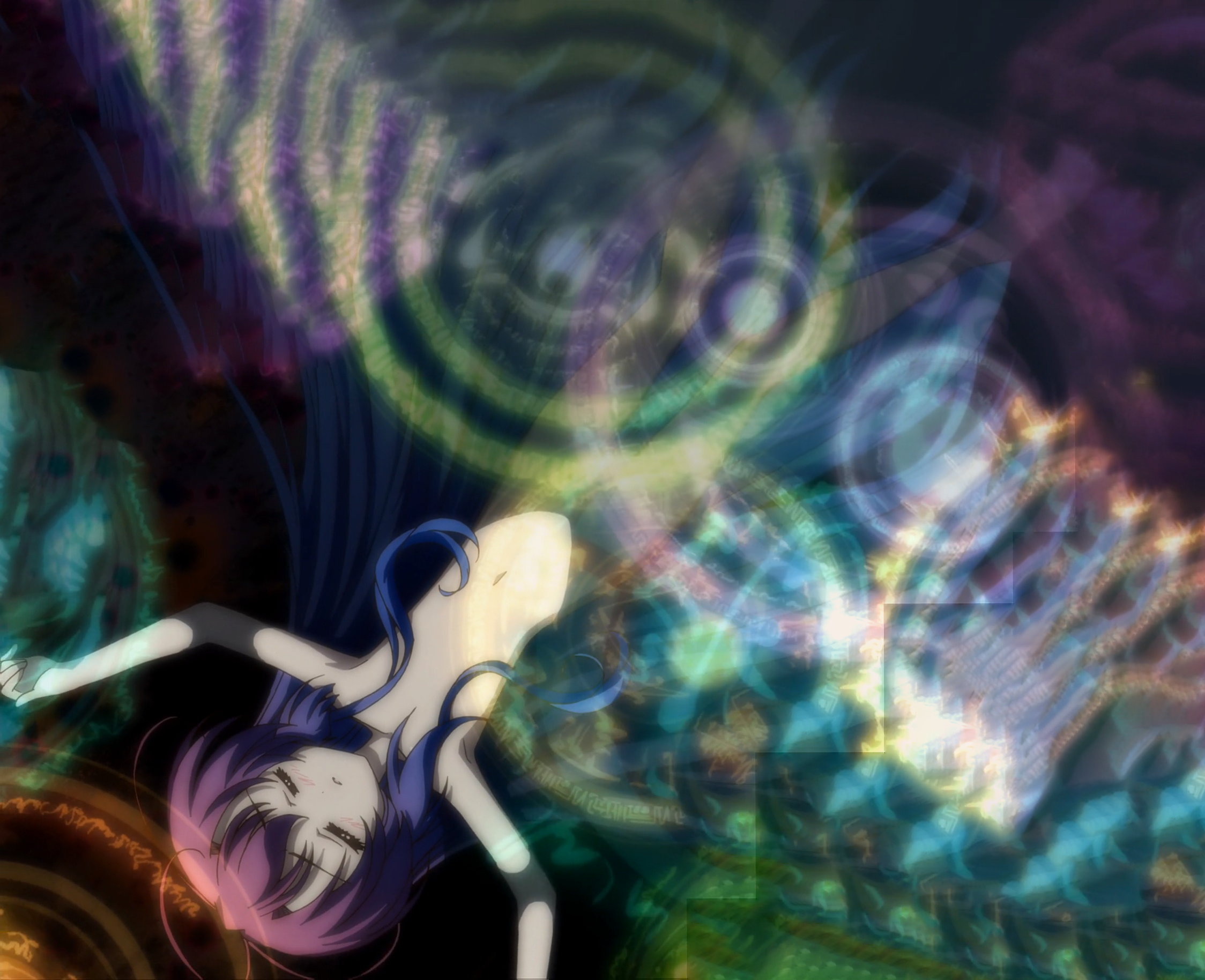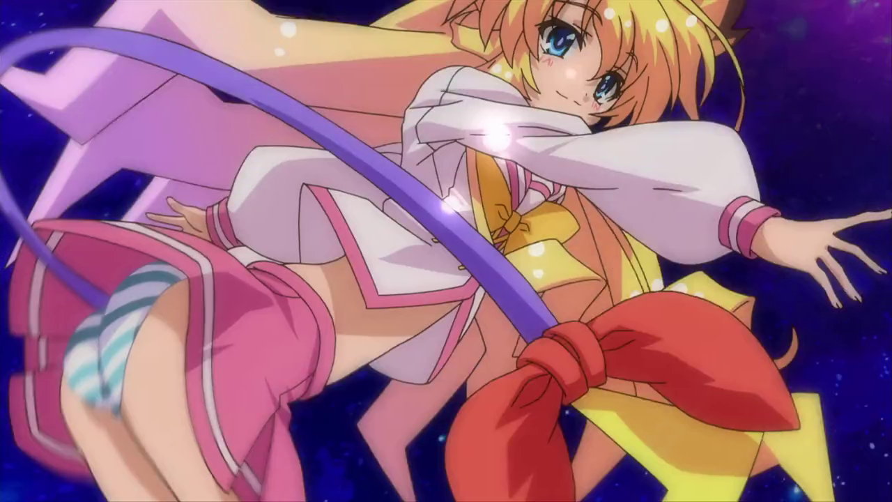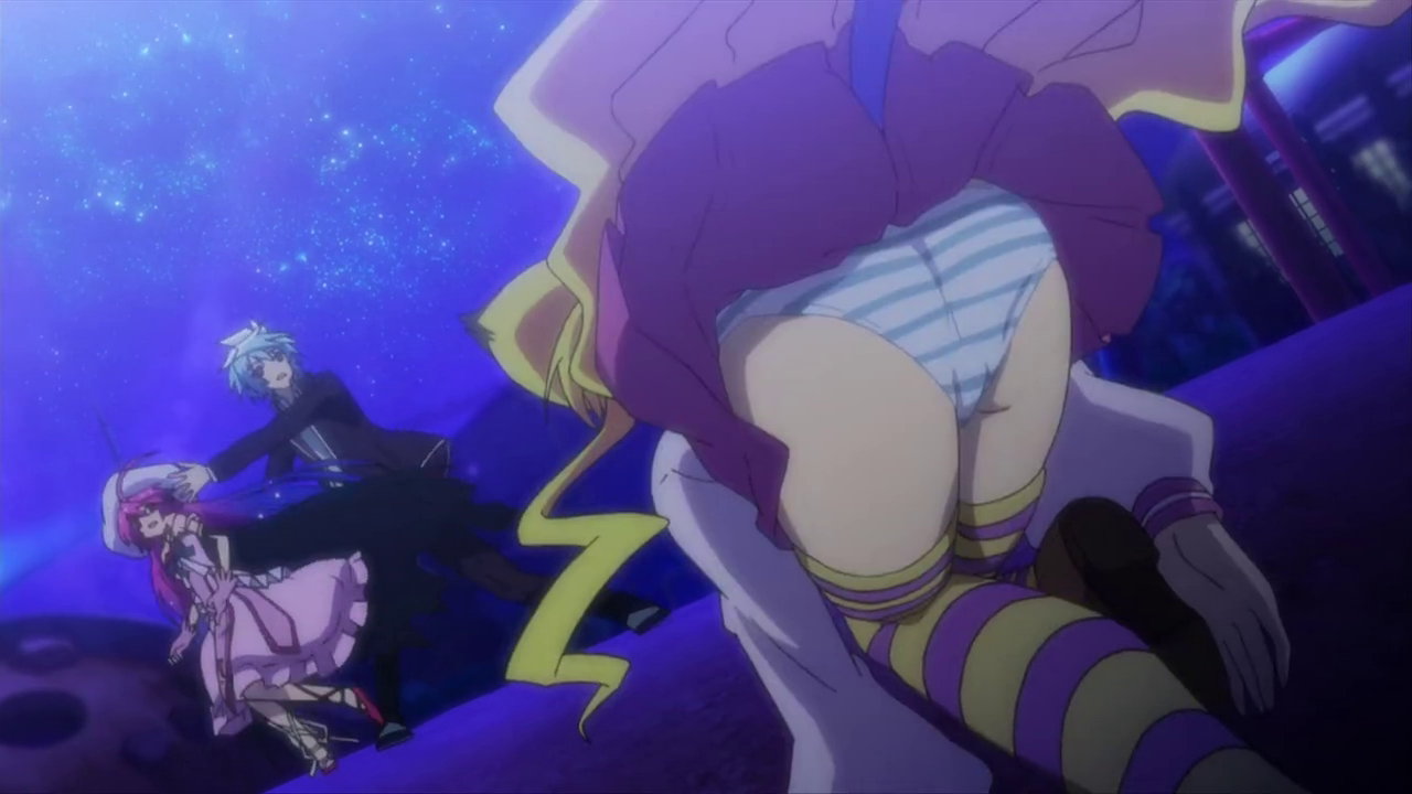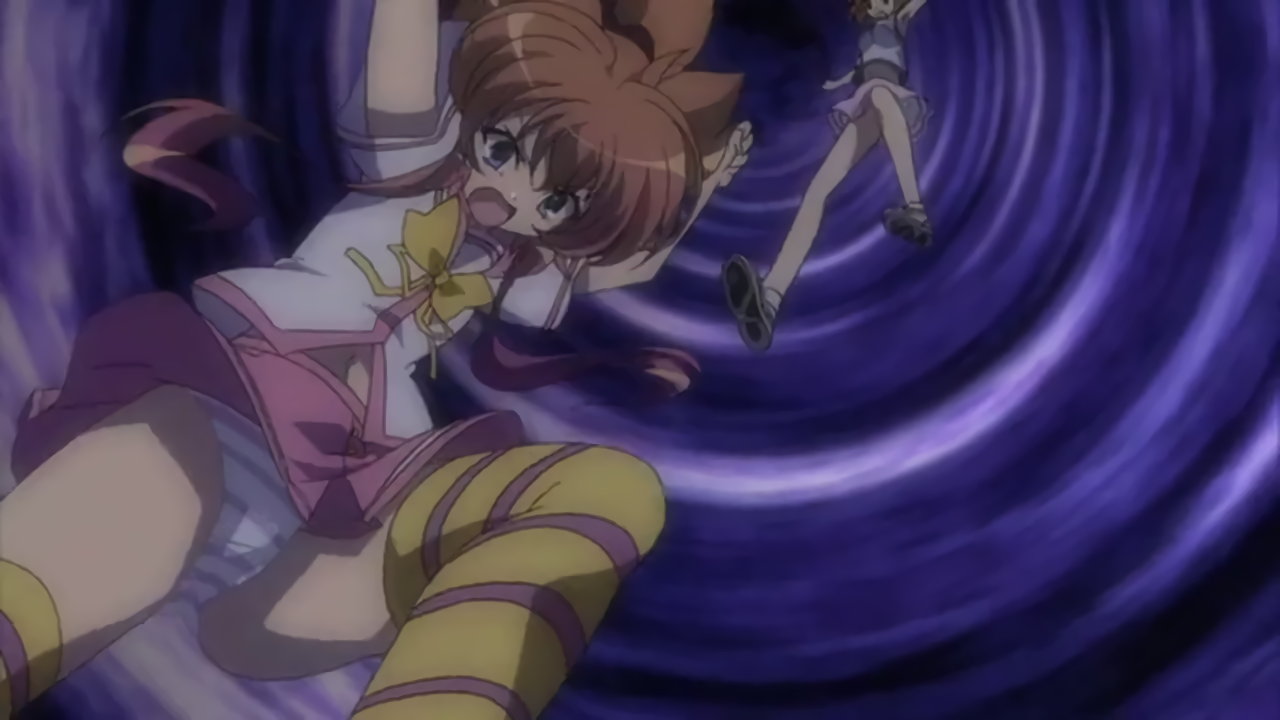 ワープ空間を降下する、パンツ丸見えの美雷(に入れ替わった大兎)