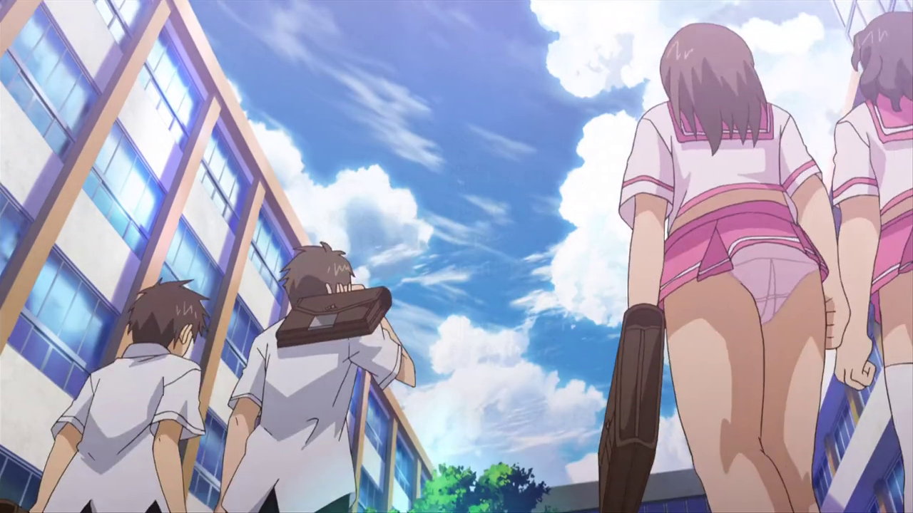 大兎と一緒に登校中の遥のパンチラ。